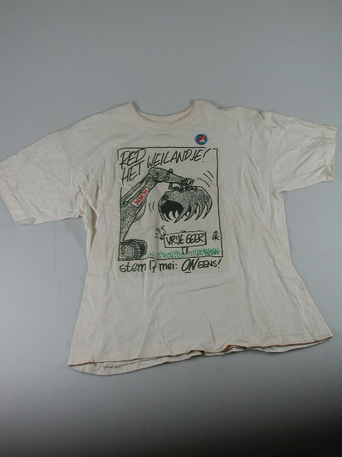T-shirt met opdruk 'De Vrije Geer' en button met wap...