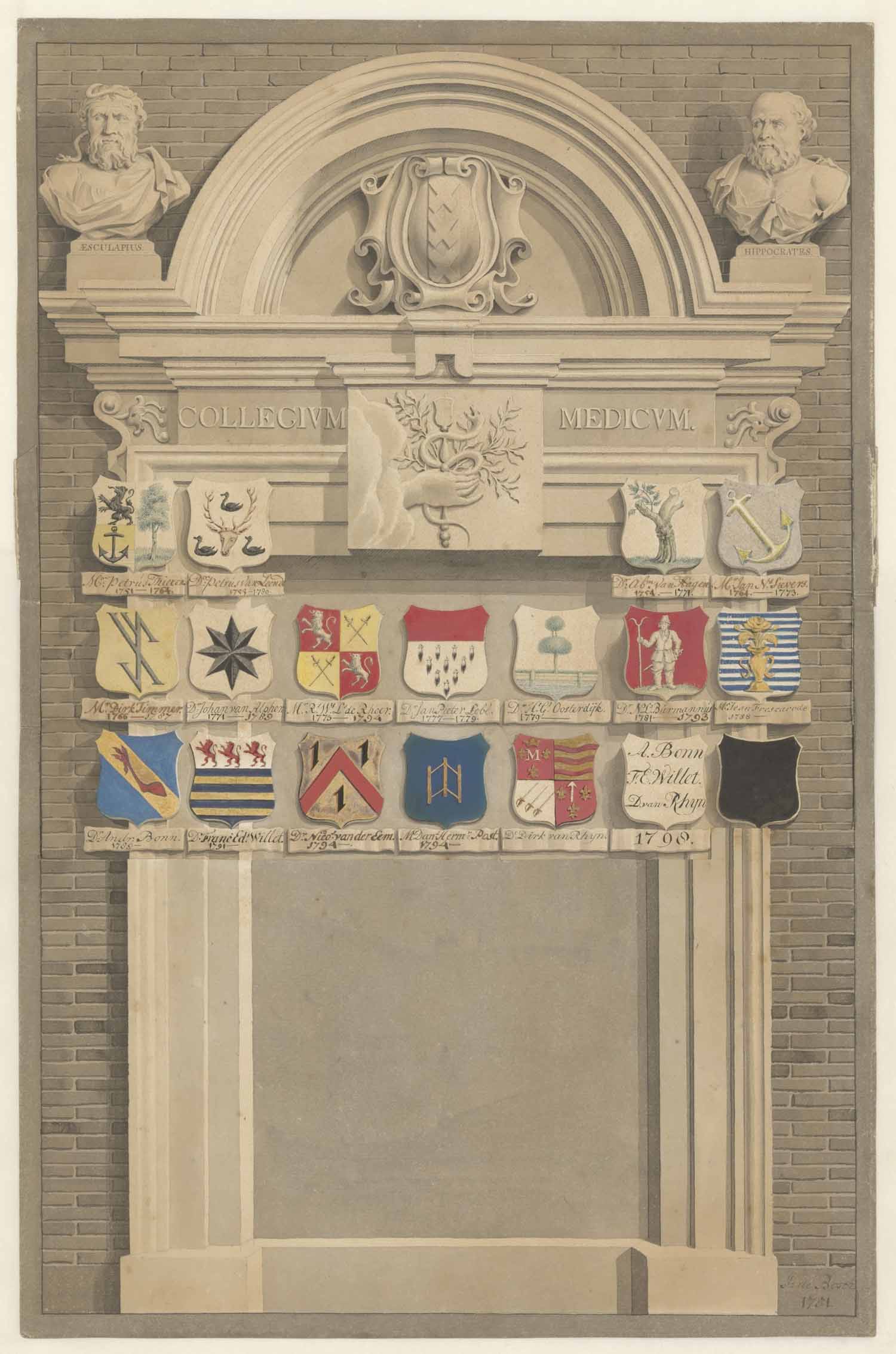 Zijstuk schoorsteenmantel met kwartierstaat Jan Piet...