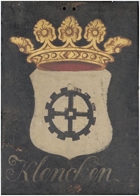 Houten wapenbord met in het wapen drie klaverbladen,...
