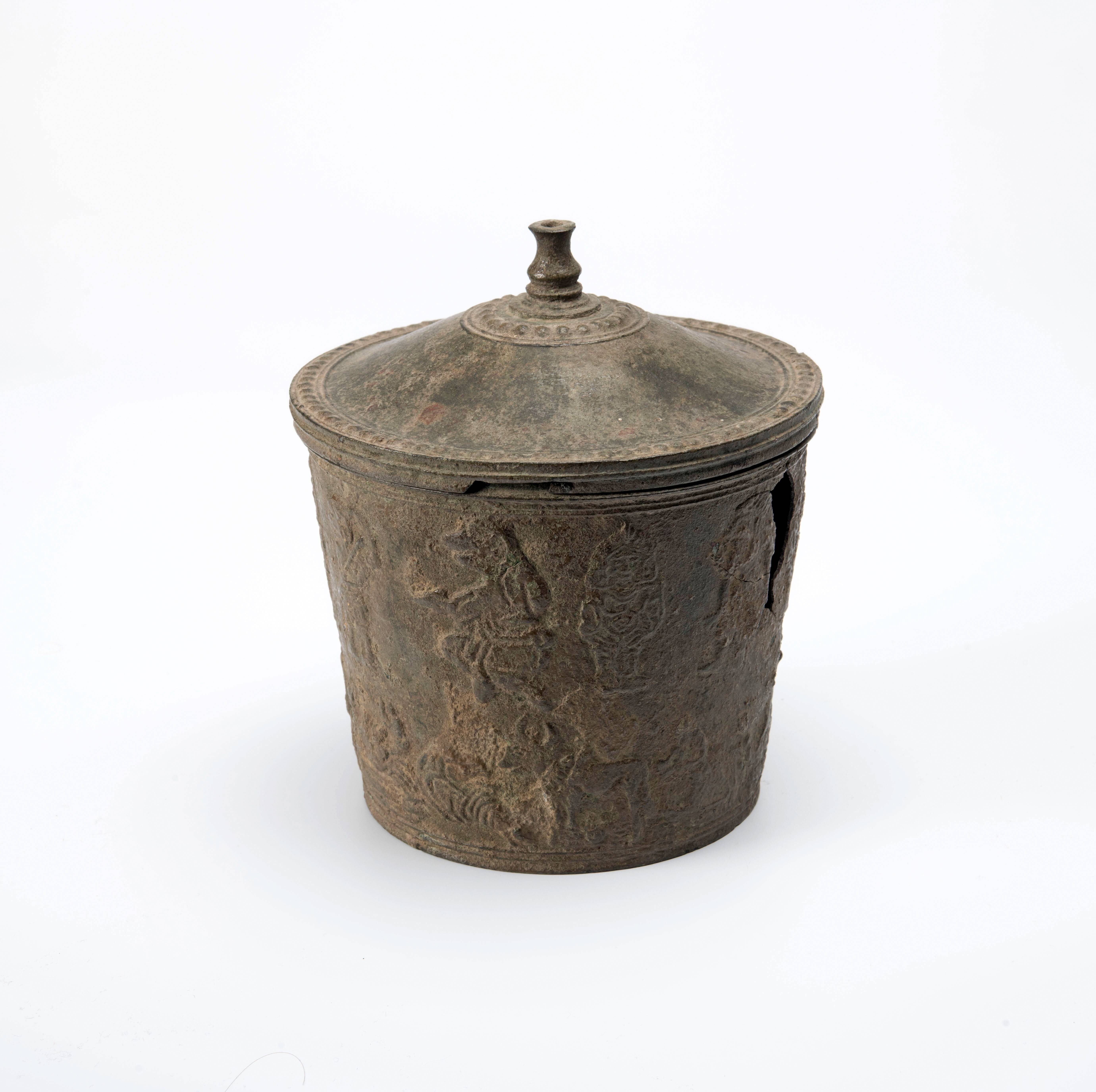 Bronzen Indo-Javaanse zodiakbeker met deksel