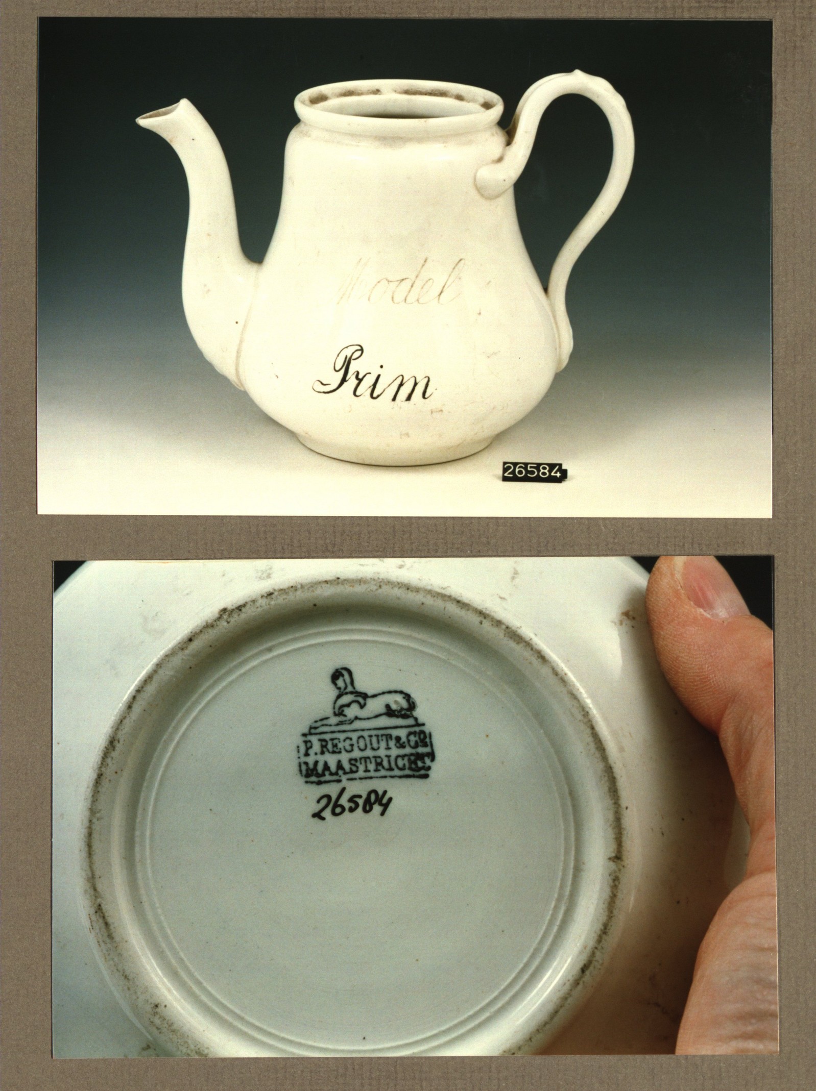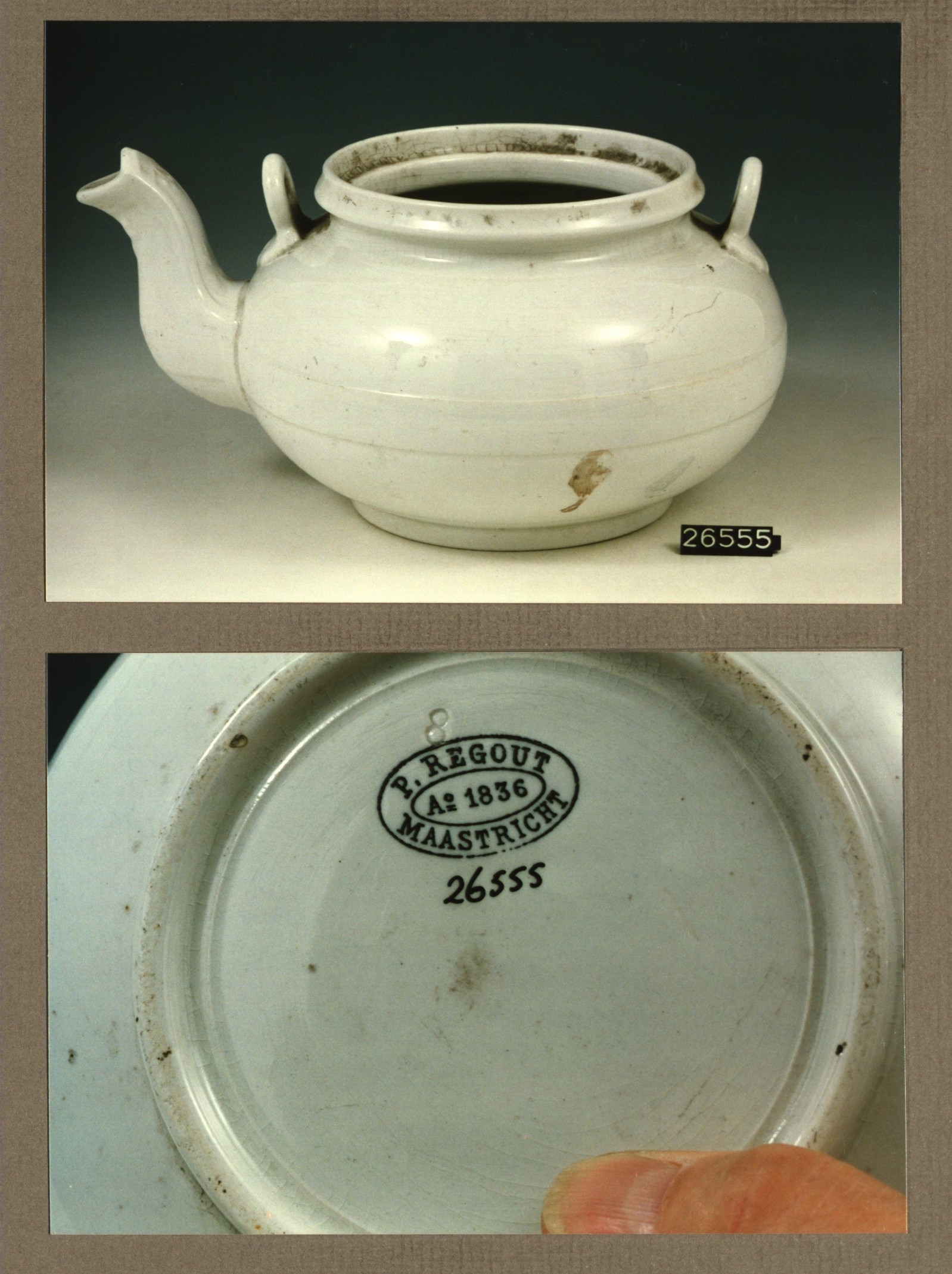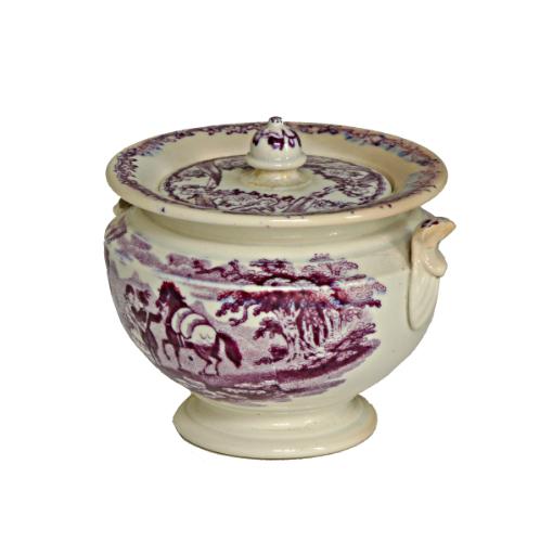 Suikerpot van geglazuurd aardewerk met donkerpaarse ...