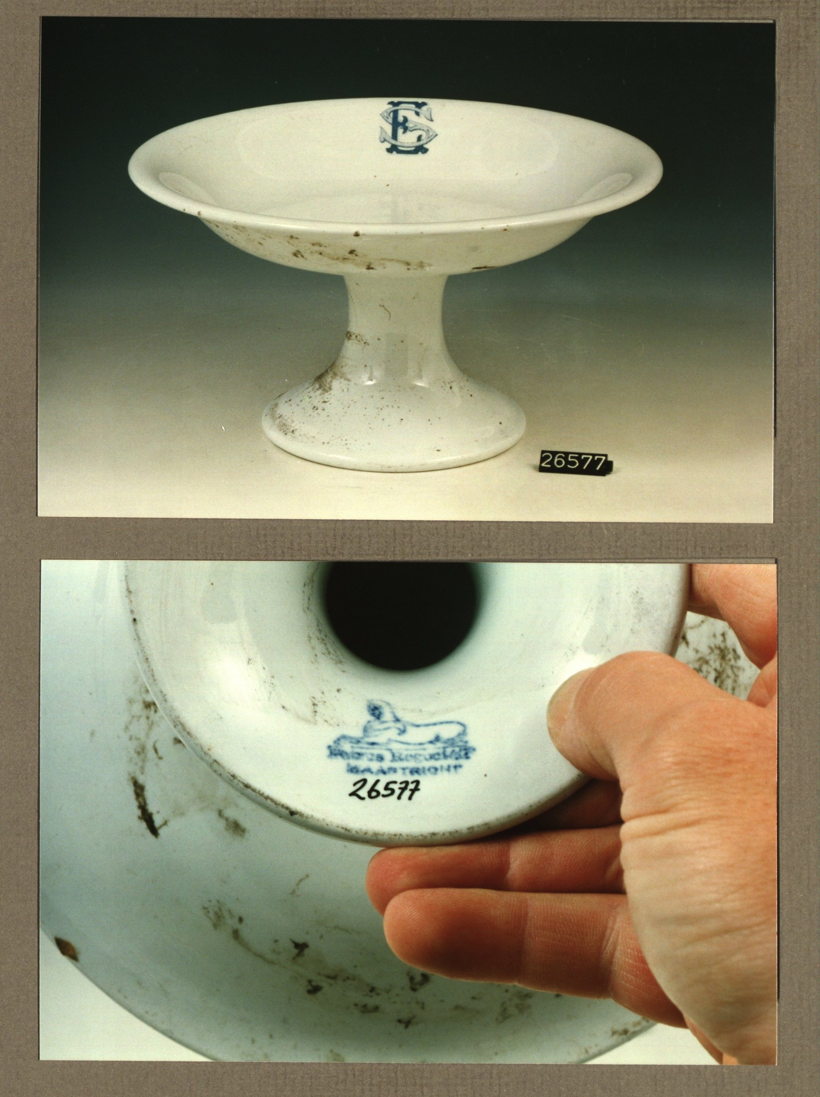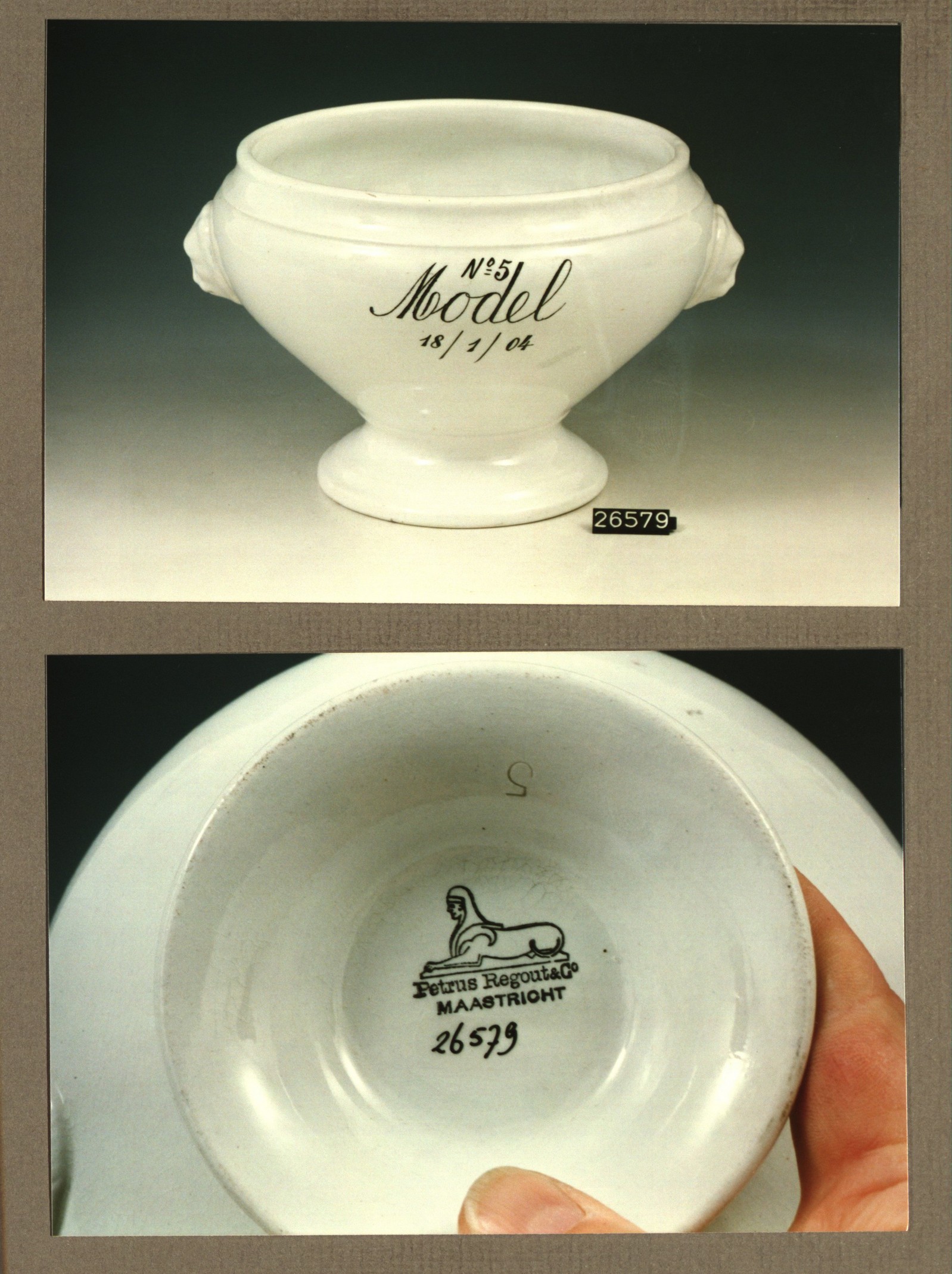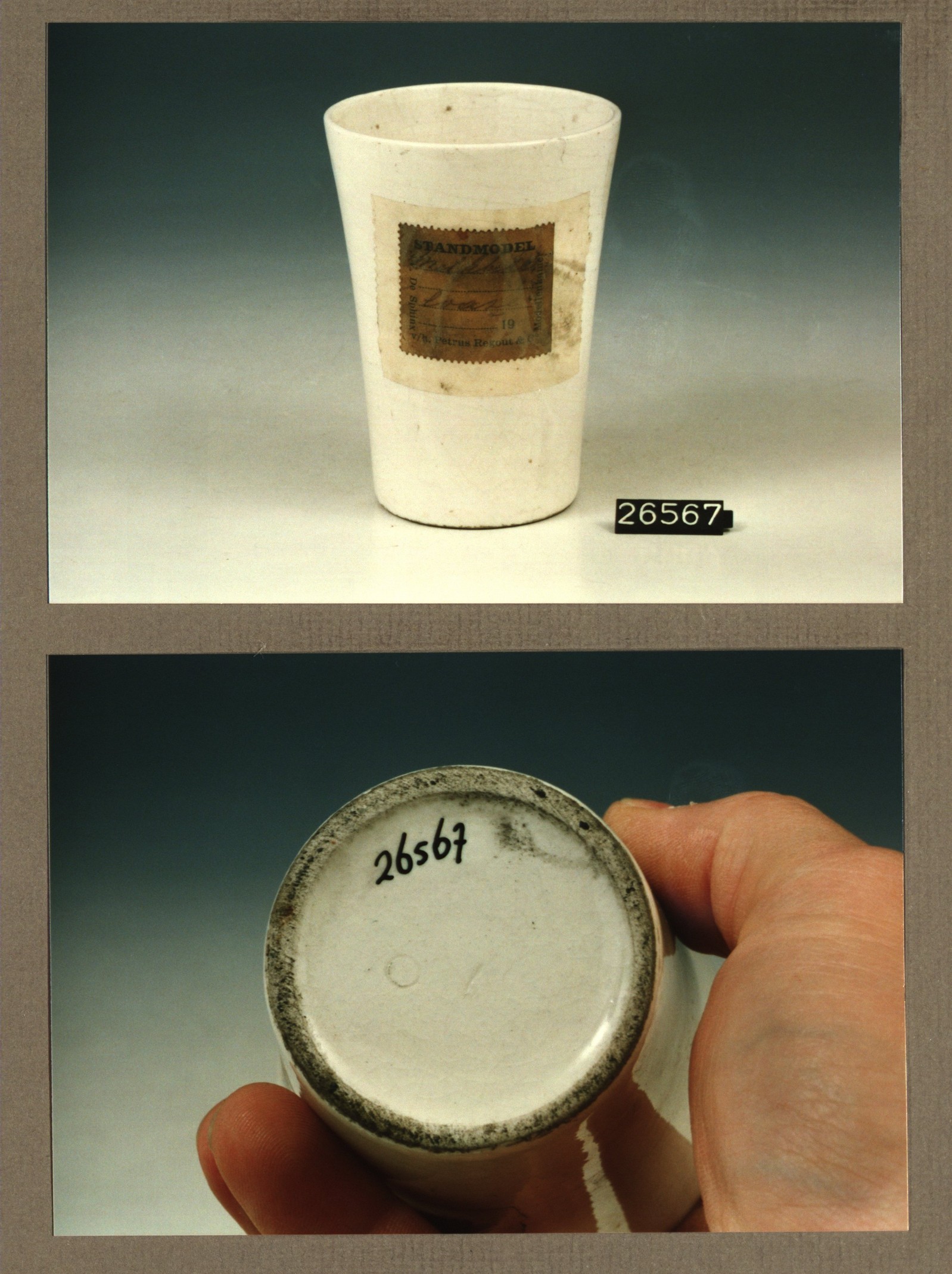 Witte kwispedoor op standring, gemerkt, industrieel ...