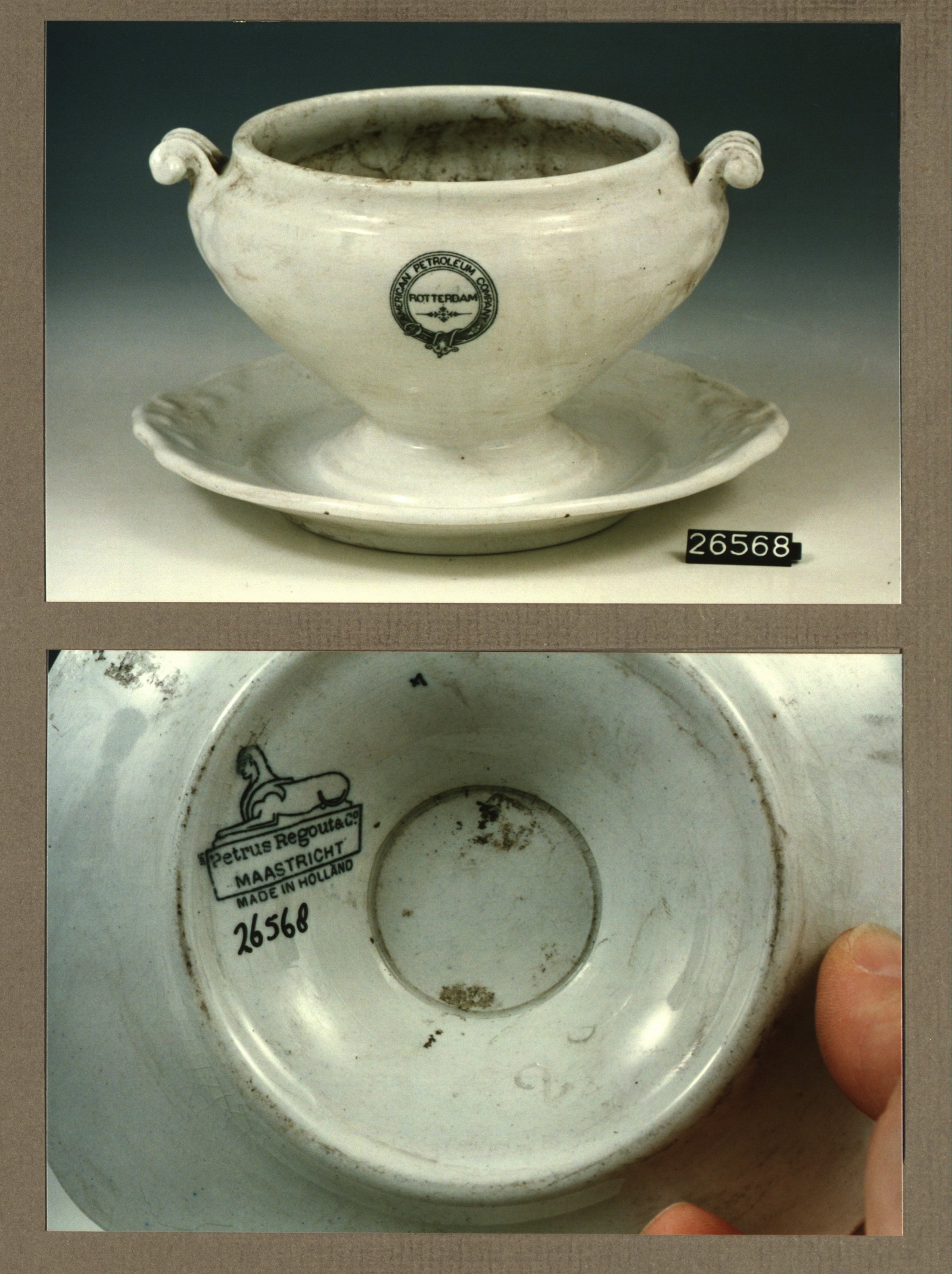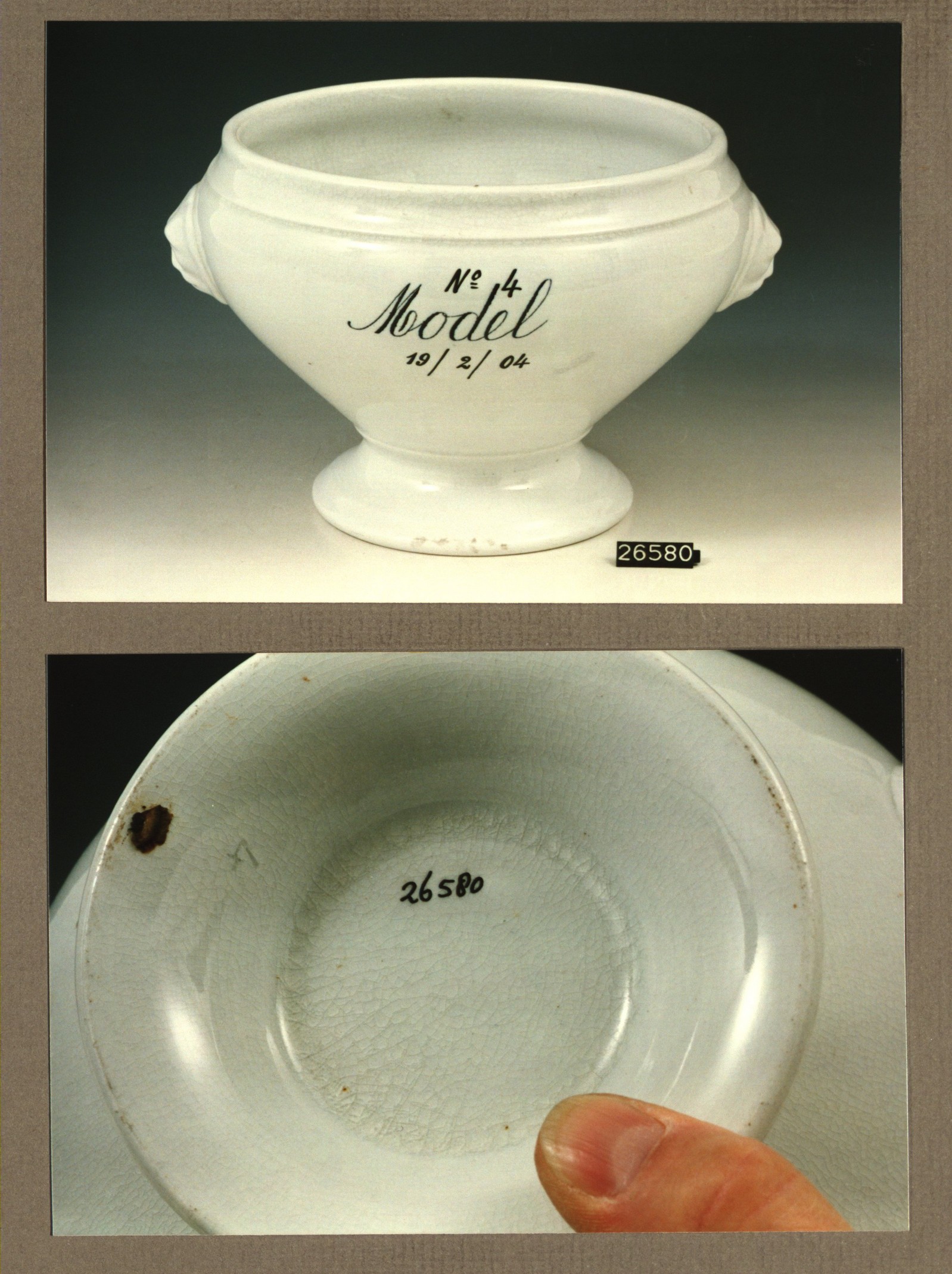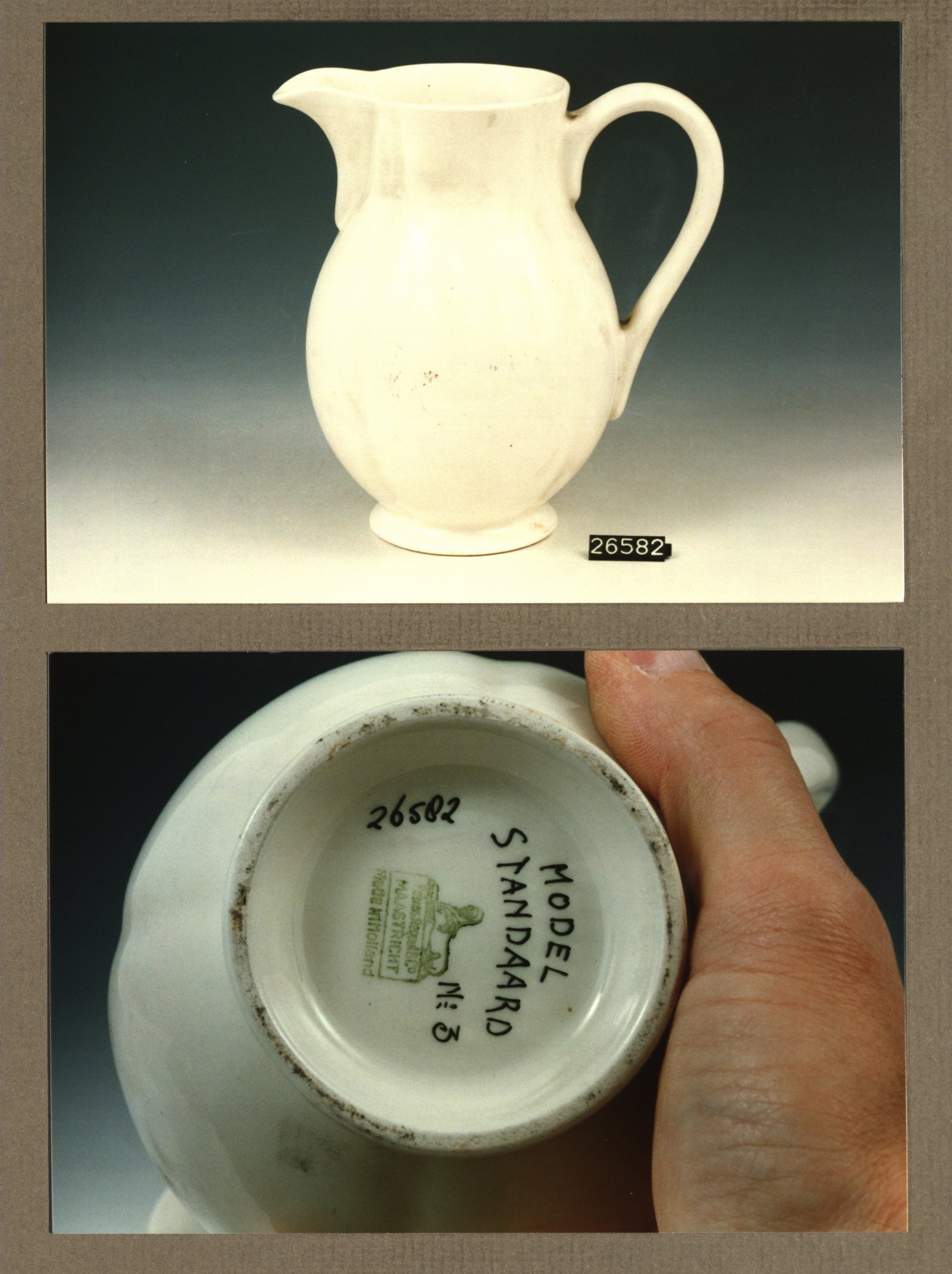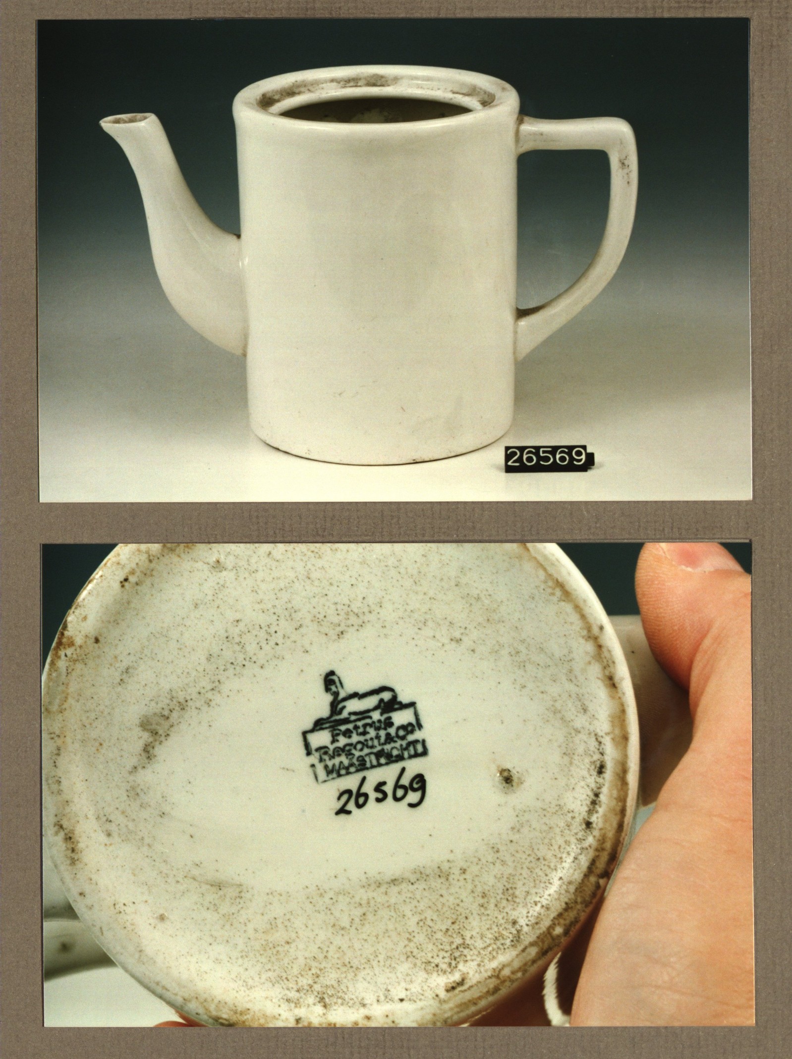Witte kwispedoor op standring, gemerkt, industrieel ...