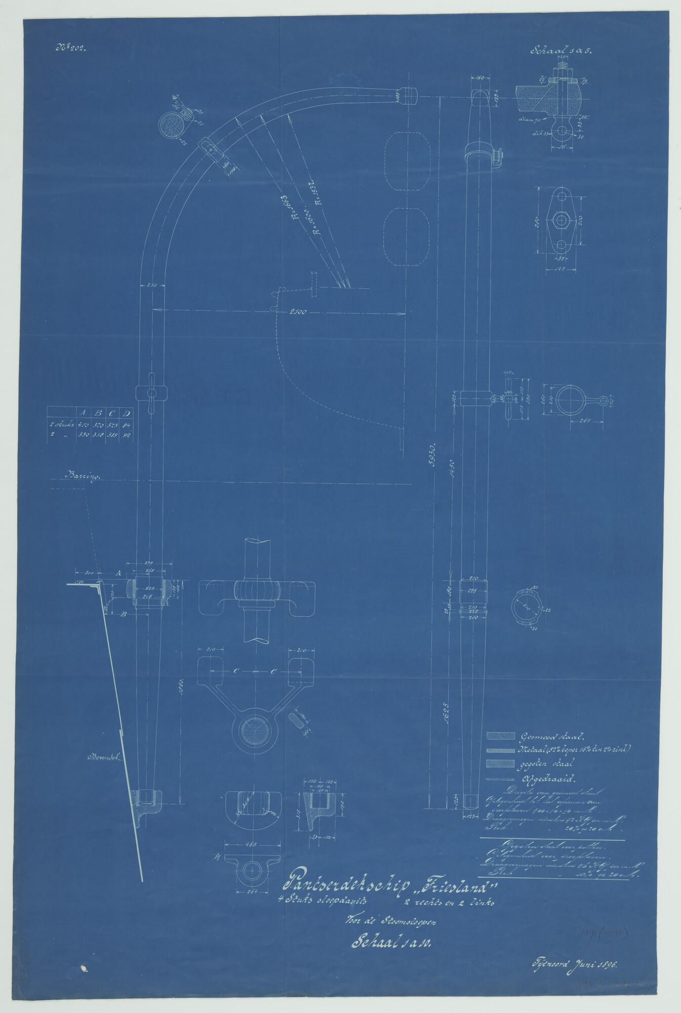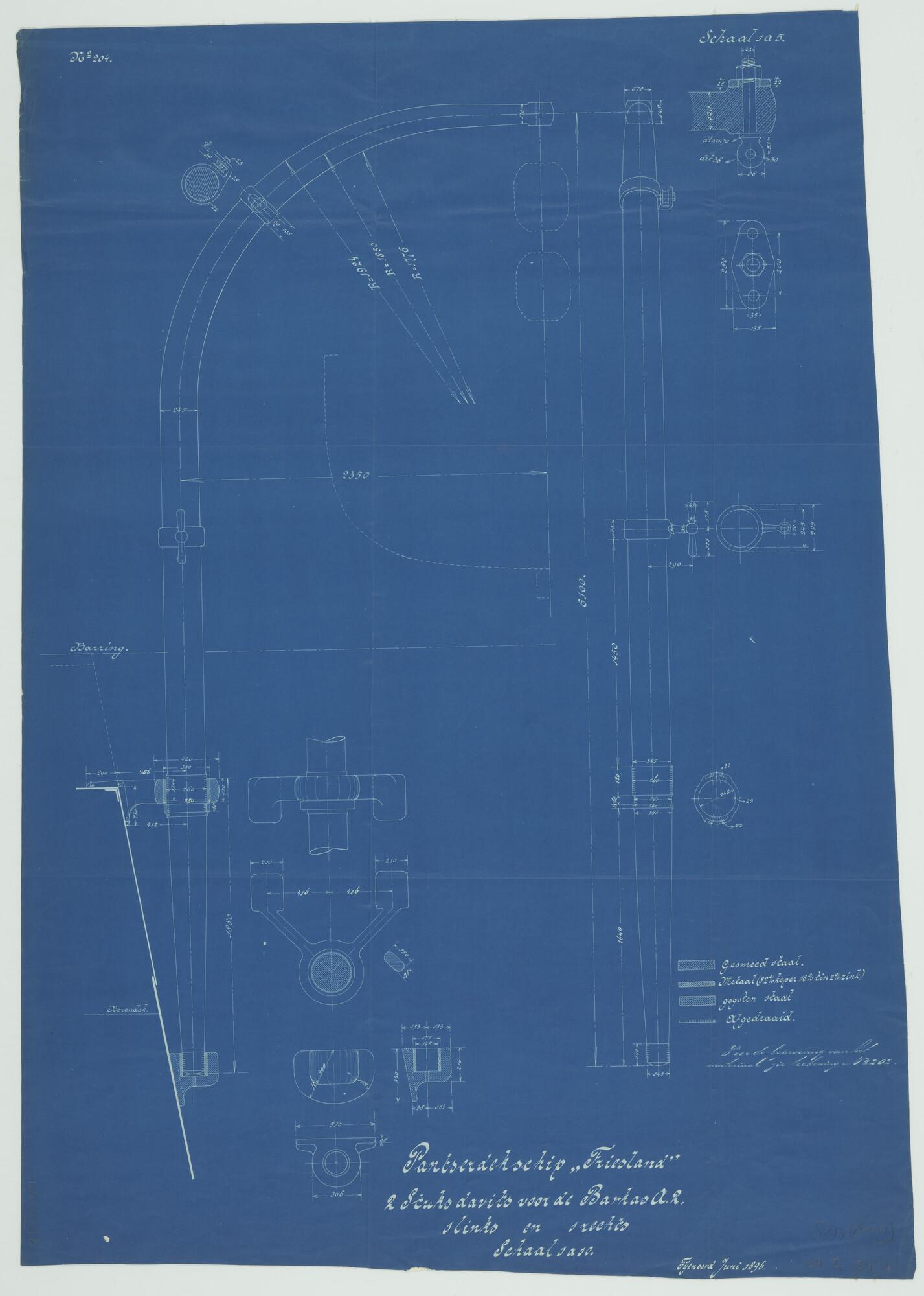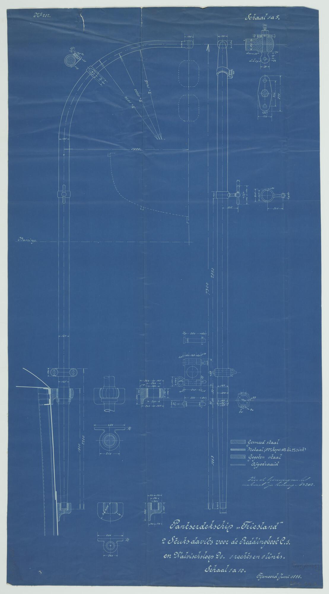 Vier stuks sloepdavits voor de stoomsloepen van het ...