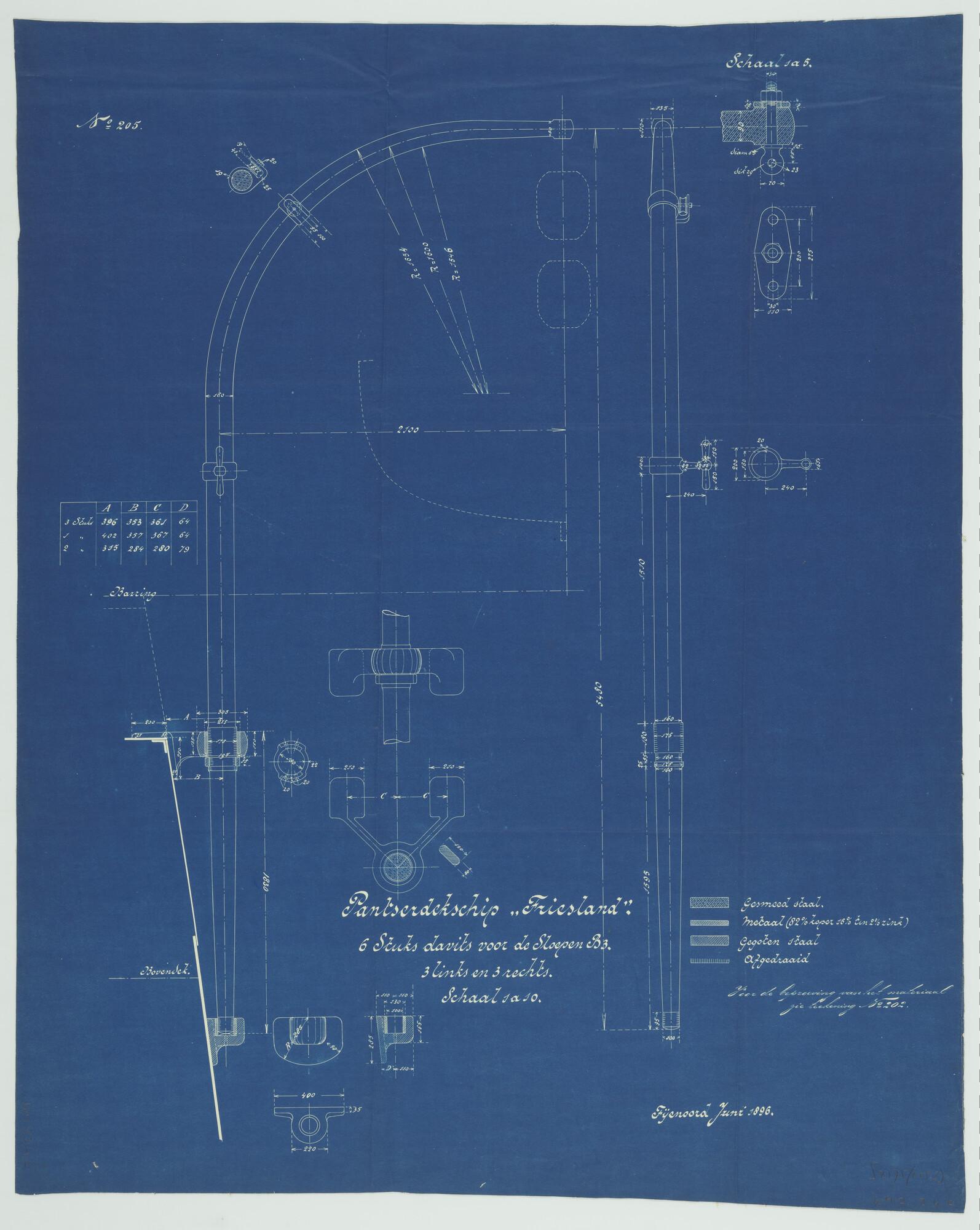 Zes stuks davits voor de sloepen B3 van het pantserd...