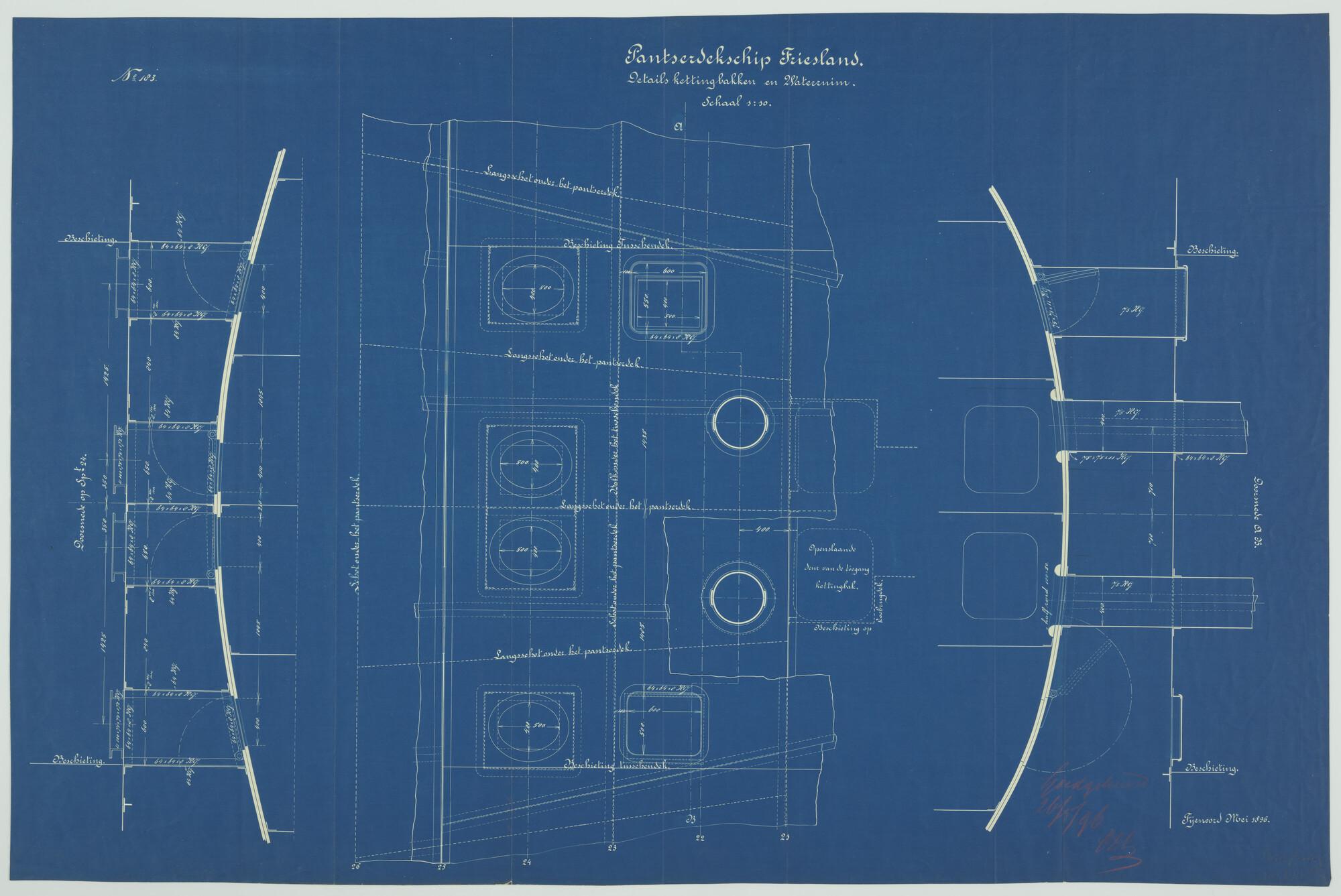 Details kettingbakken en waterruim van het pantserde...