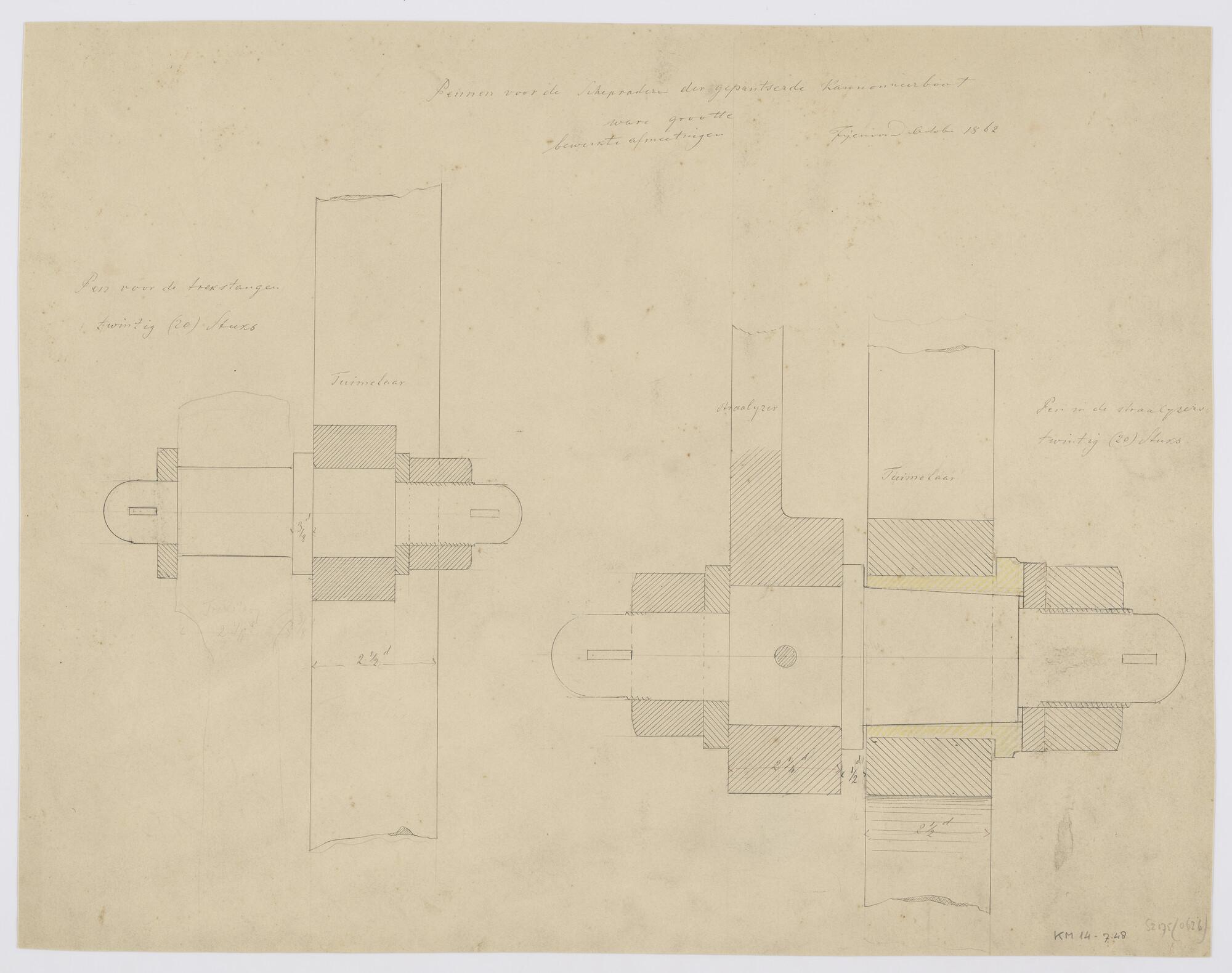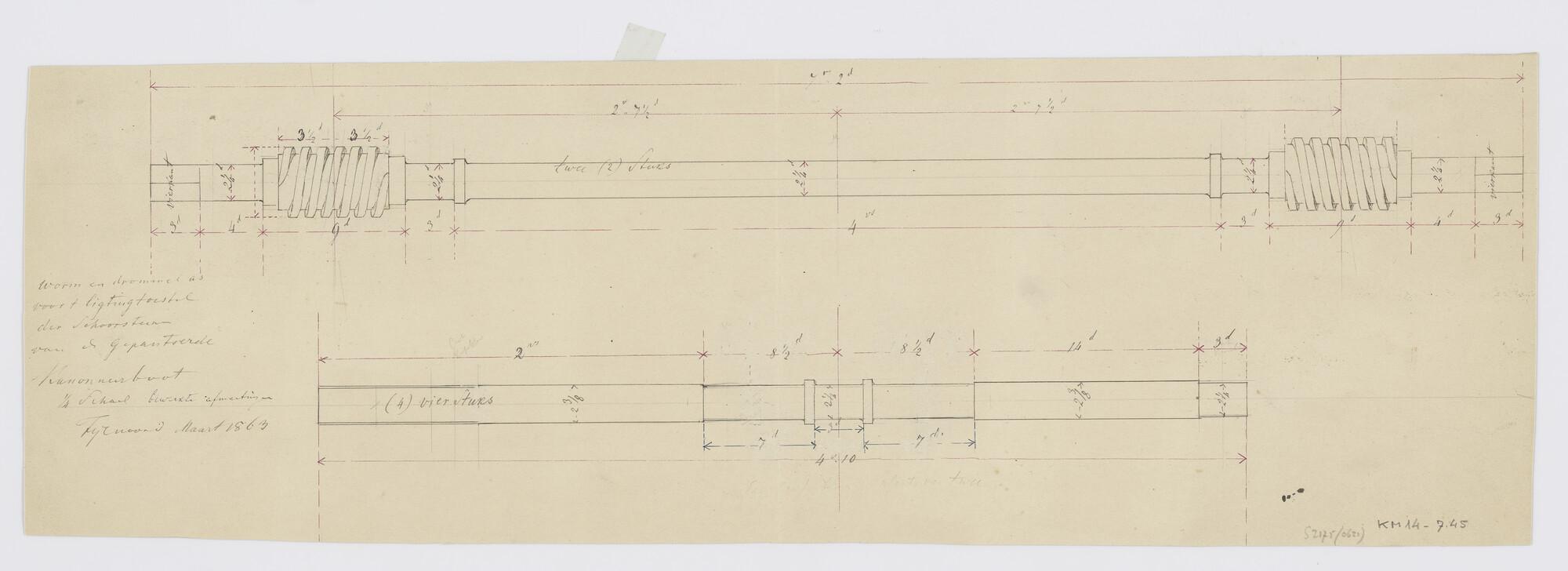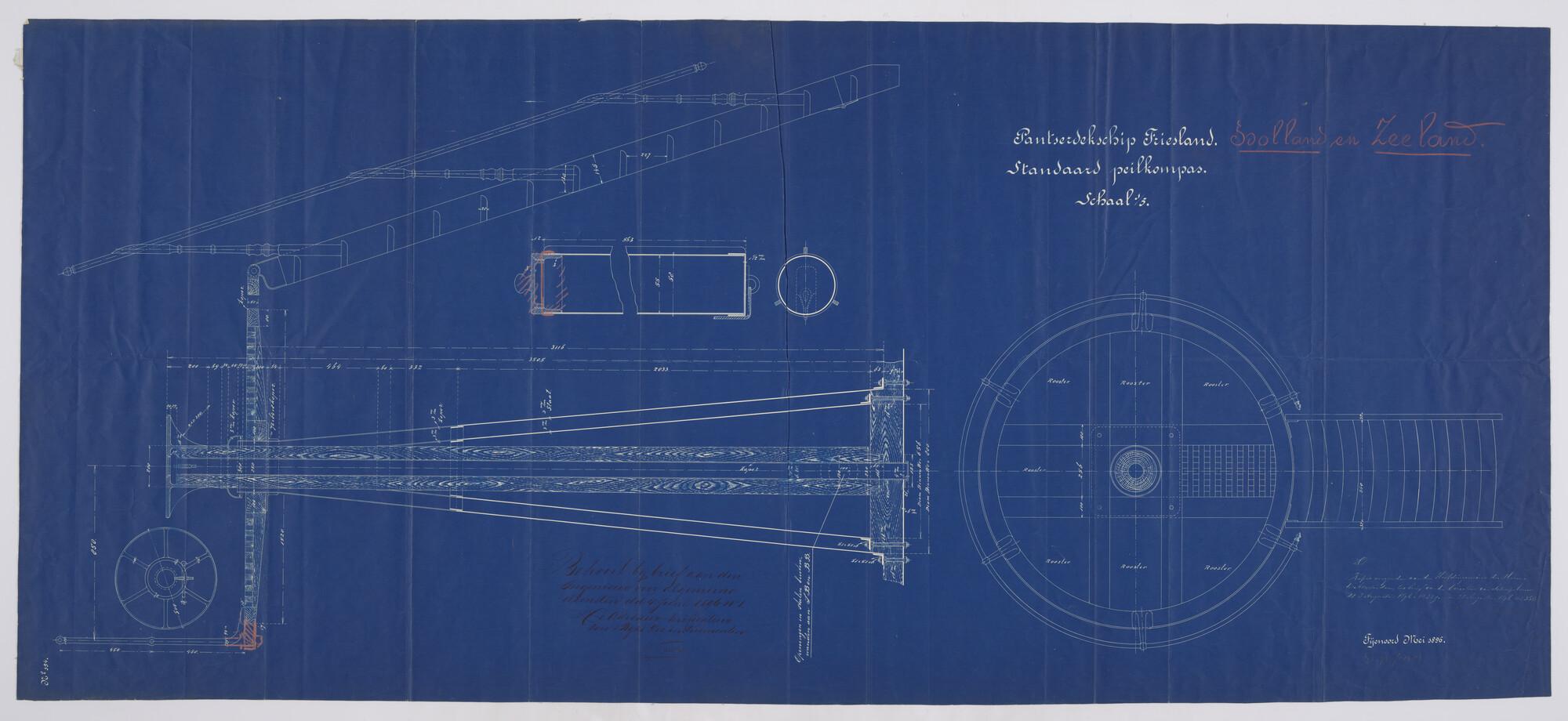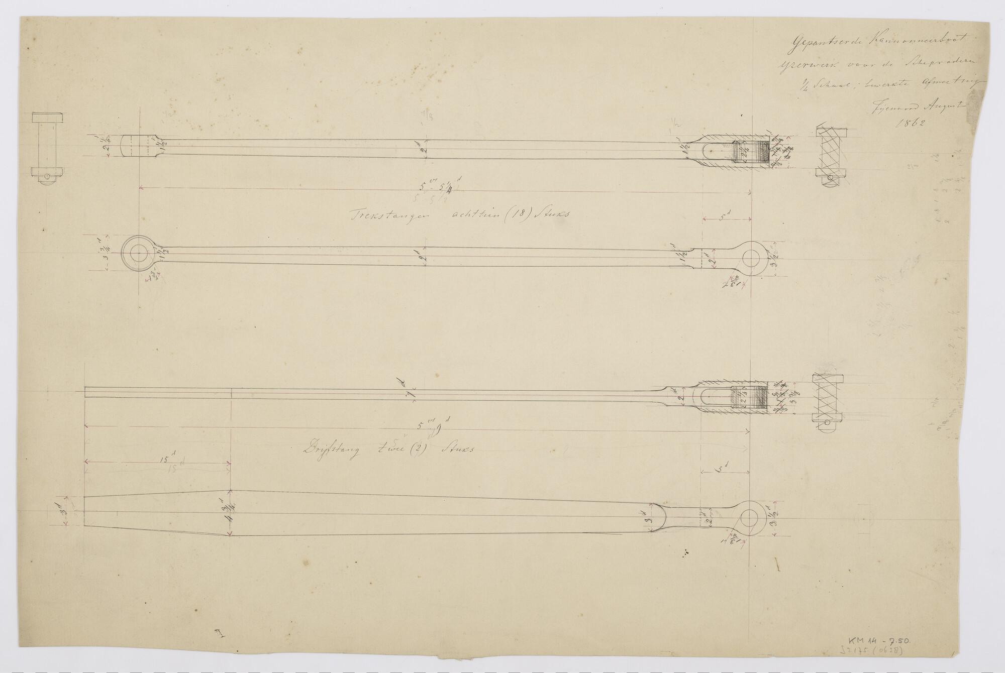 Schepraderen (langs-en-dwarsdoorsnede) van de gepant...