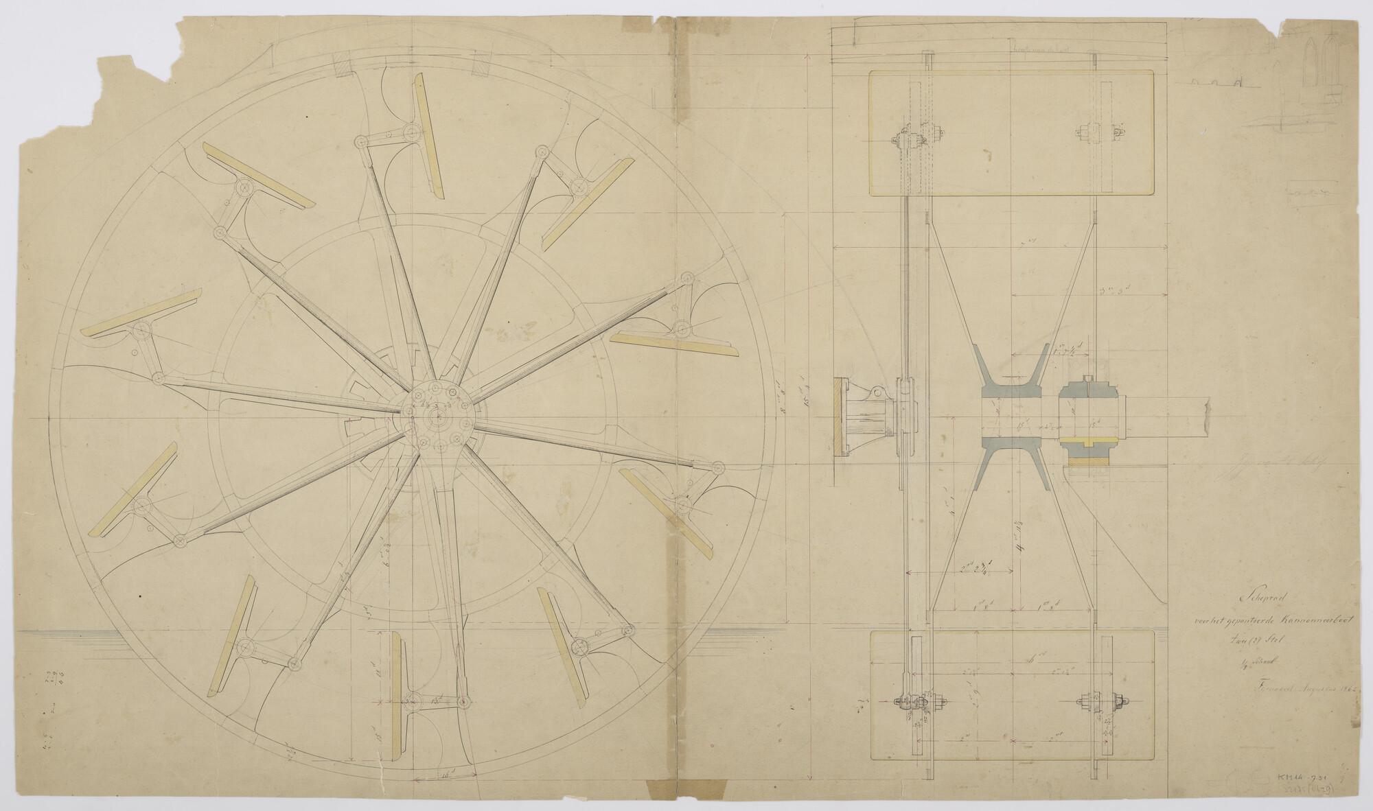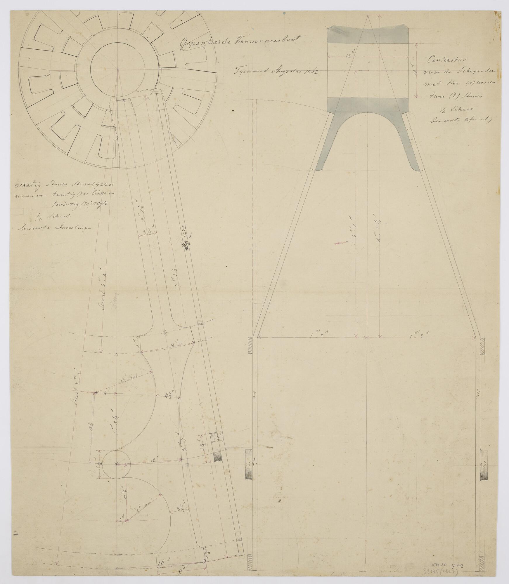 Schepraderen (straalijzers en centerstuk) van de gep...