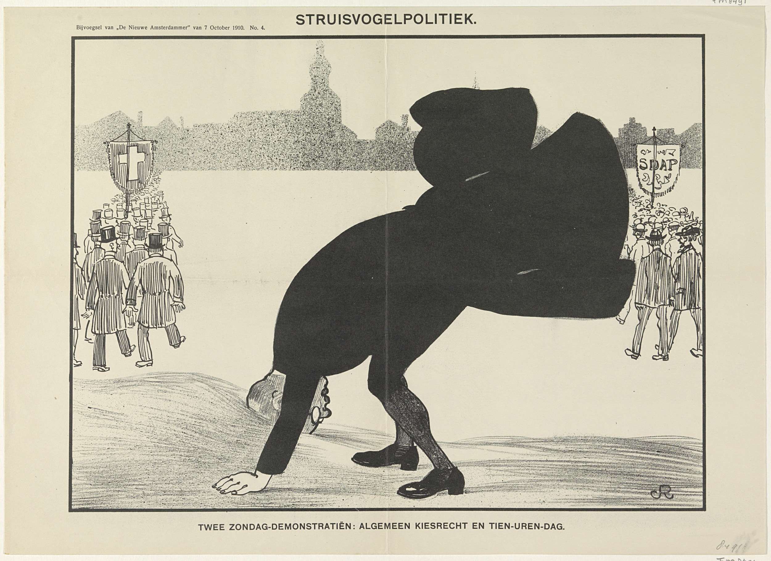 Spotprent op de electriciteitskwestie te Amsterdam, ...