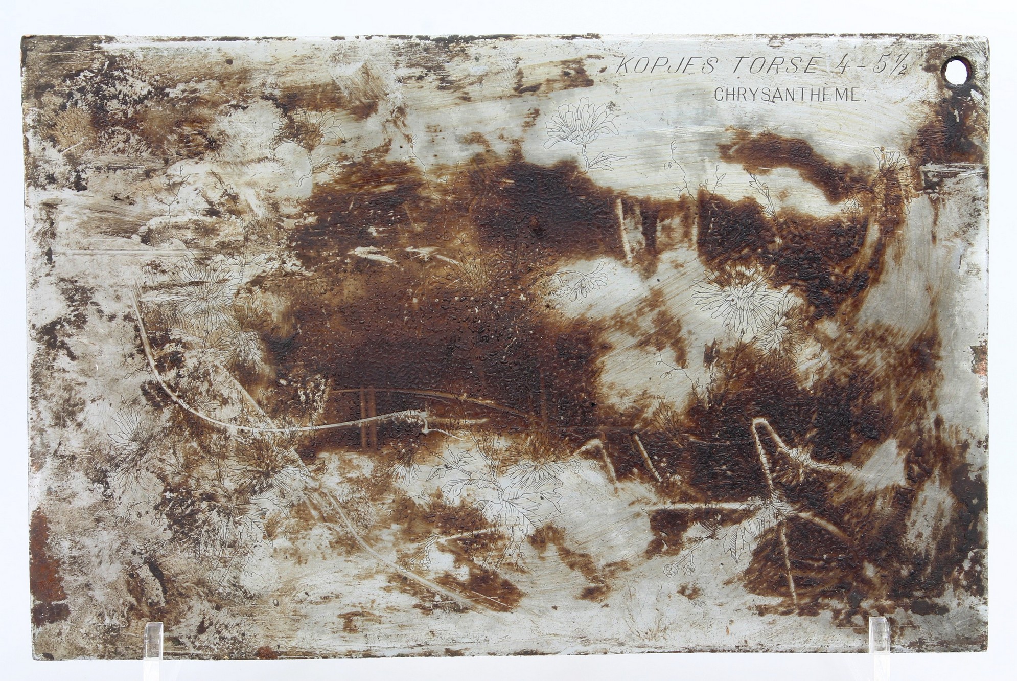 Drukplaat met decors getiteld 'Chrysantheme' / 'Tecla'