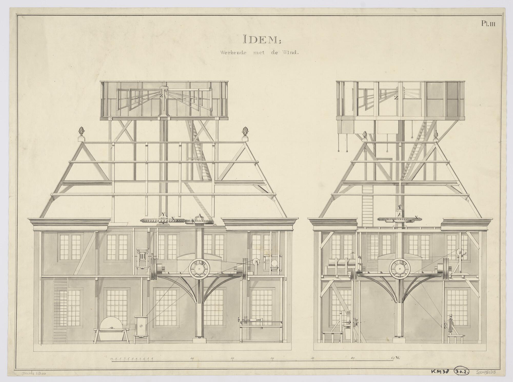 Dwarsdoorsnede van twee hellingkappen op 's Lands We...