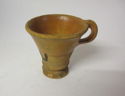 Spaarpot. Bolvormige aardewerken pot op oplopende v...