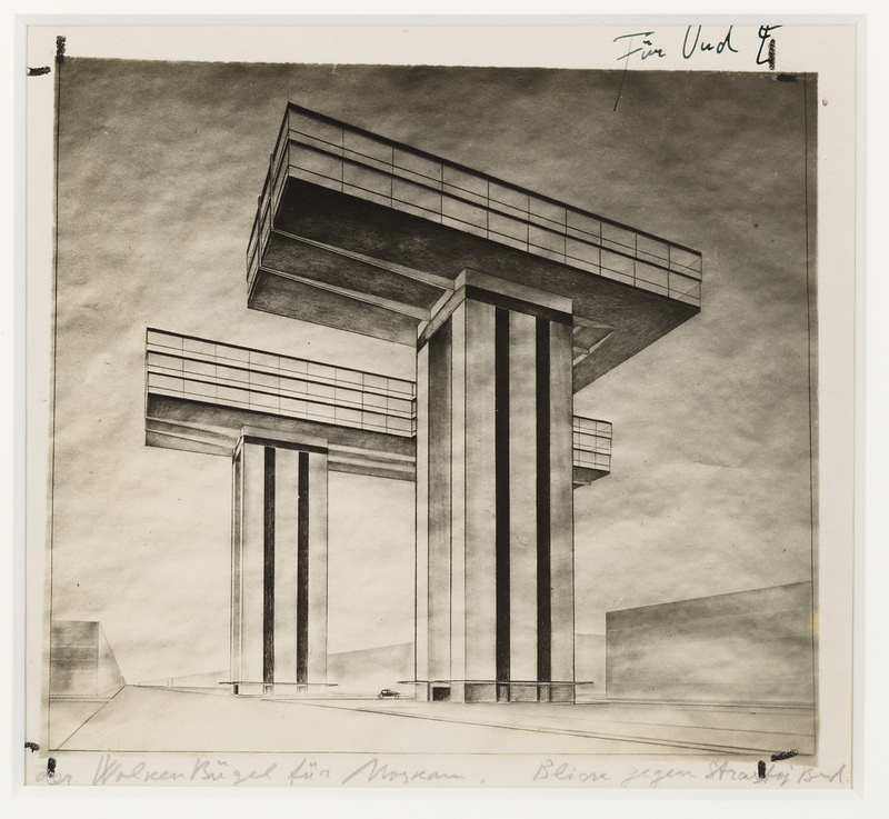 Foto van Lissitzky van zijn ontwerp 'Der Wolkenbügel...