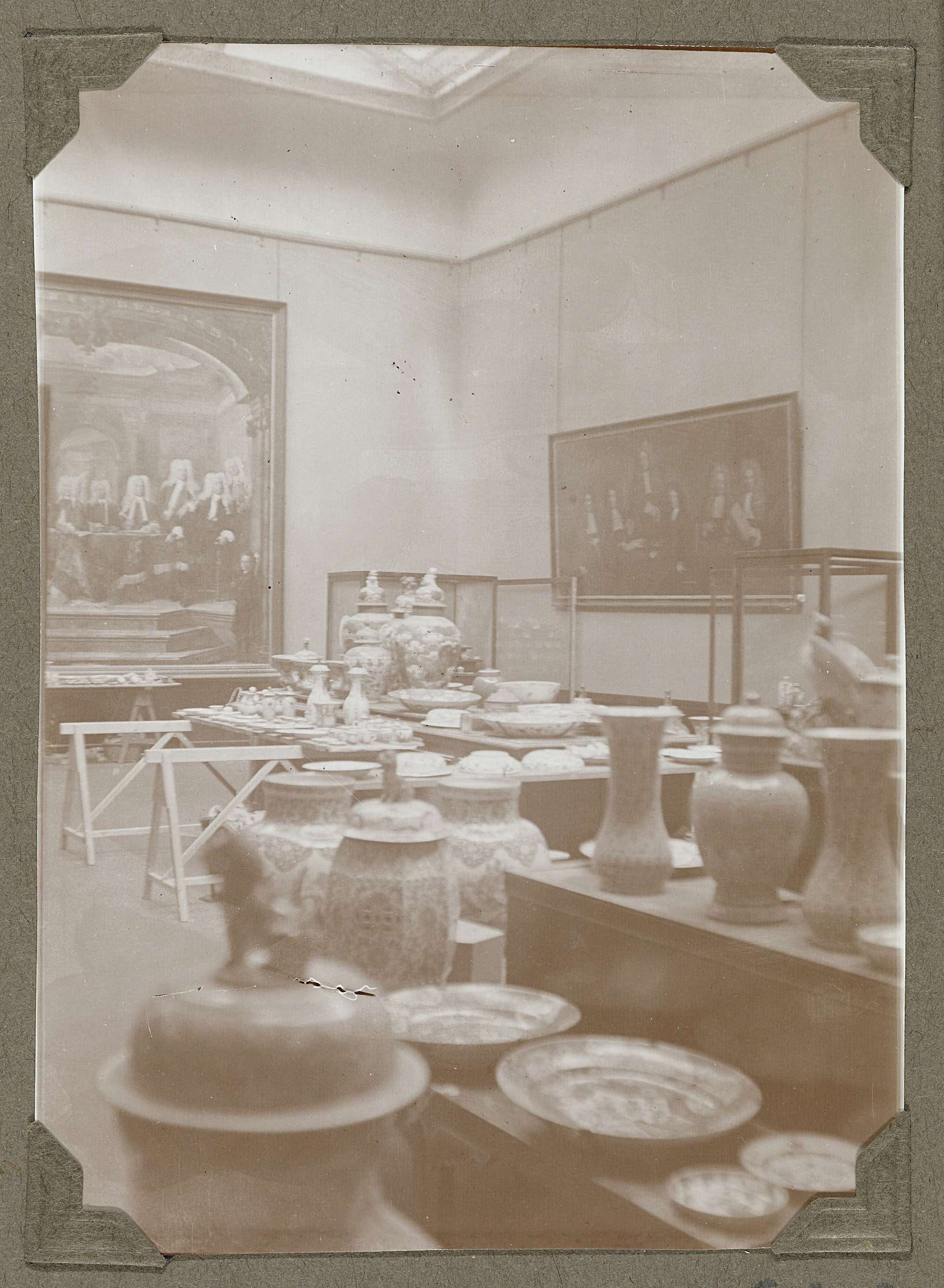 Opstelling van Delfts aardewerk in de Eregalerij in ...