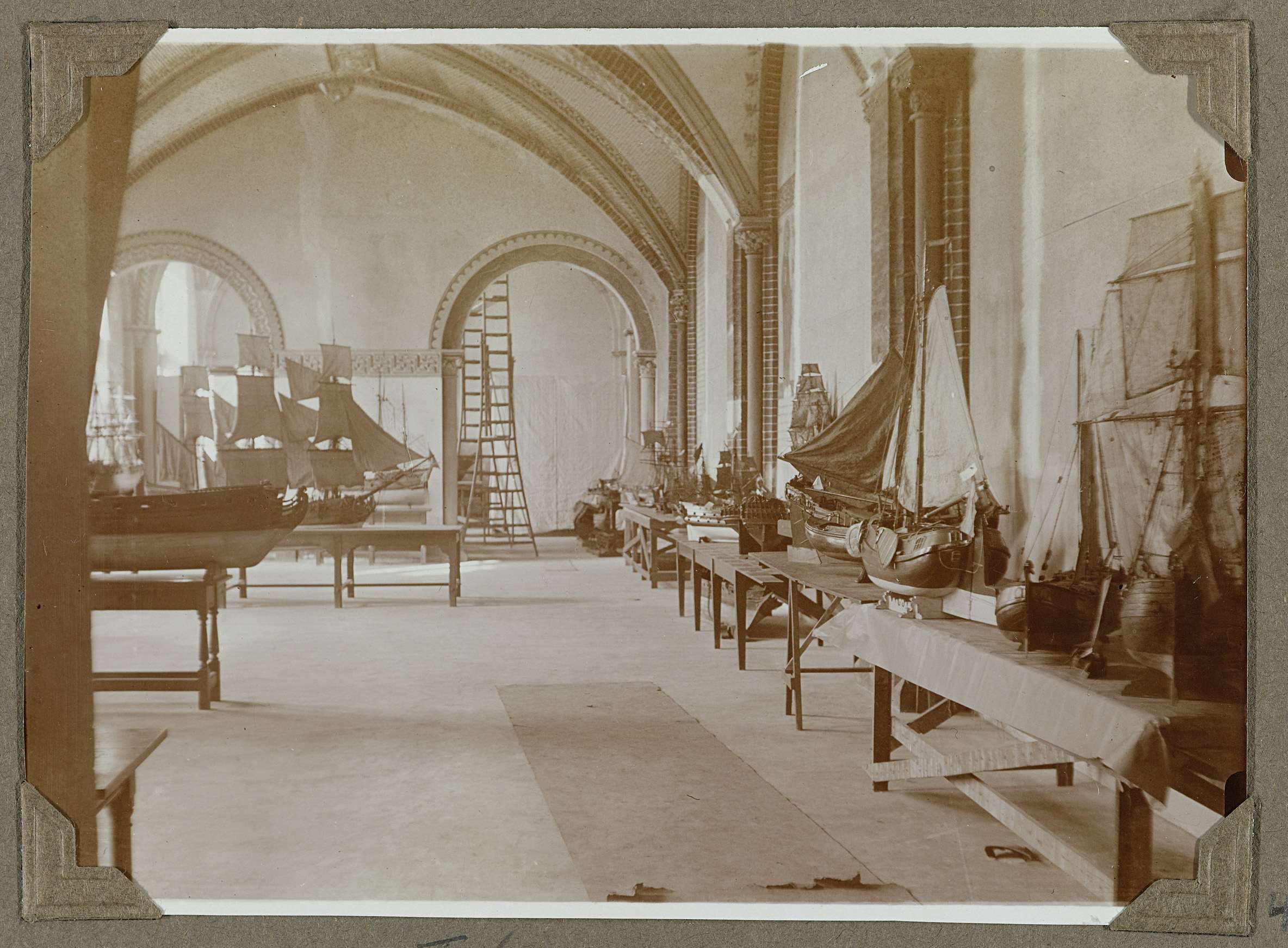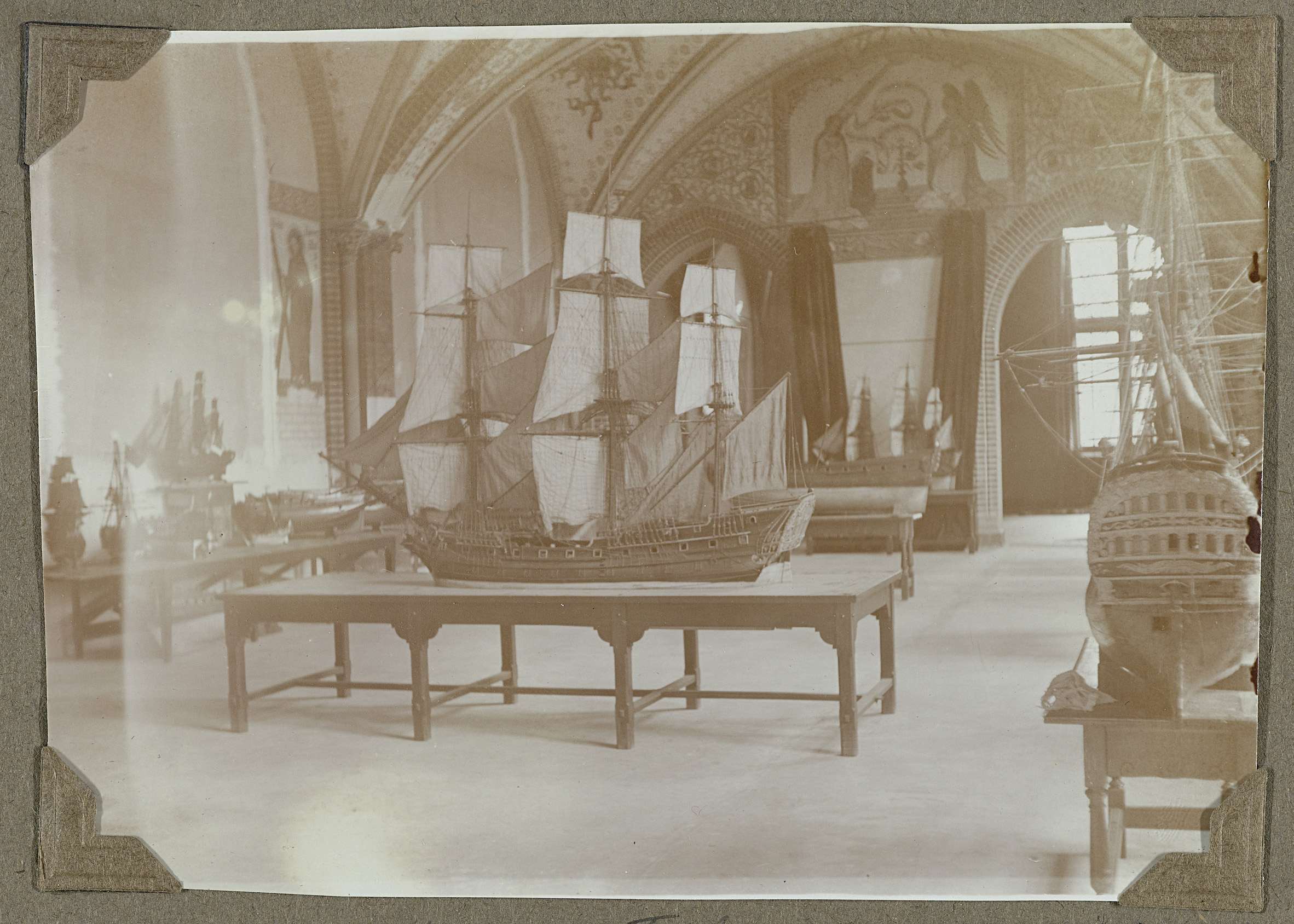 Scheepsmodel opgesteld in de vernieuwde modellenzaal...