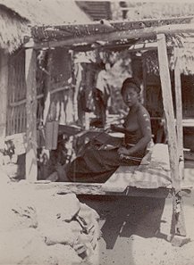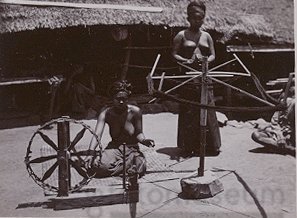 Bali-aga meisjes bij het opwinden van de gesponnen d...