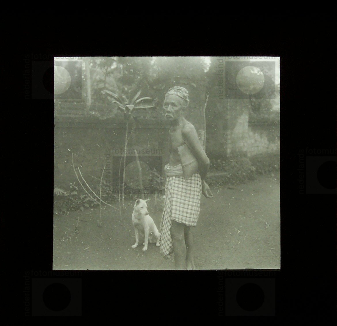 Oude man met hondje, Bali, Indonesië (1912-1914)