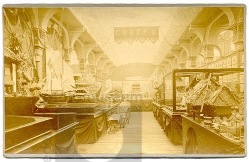 Koloniale Afdeling met het model van een huis uit de...