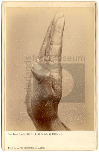 Foto van een hand van een Soendanees gemaakt tijdens...