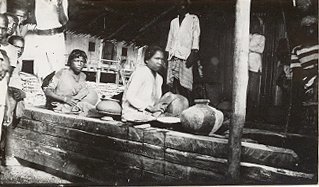 Opstelling van beelden van een Dajakse vrouw, een gr...