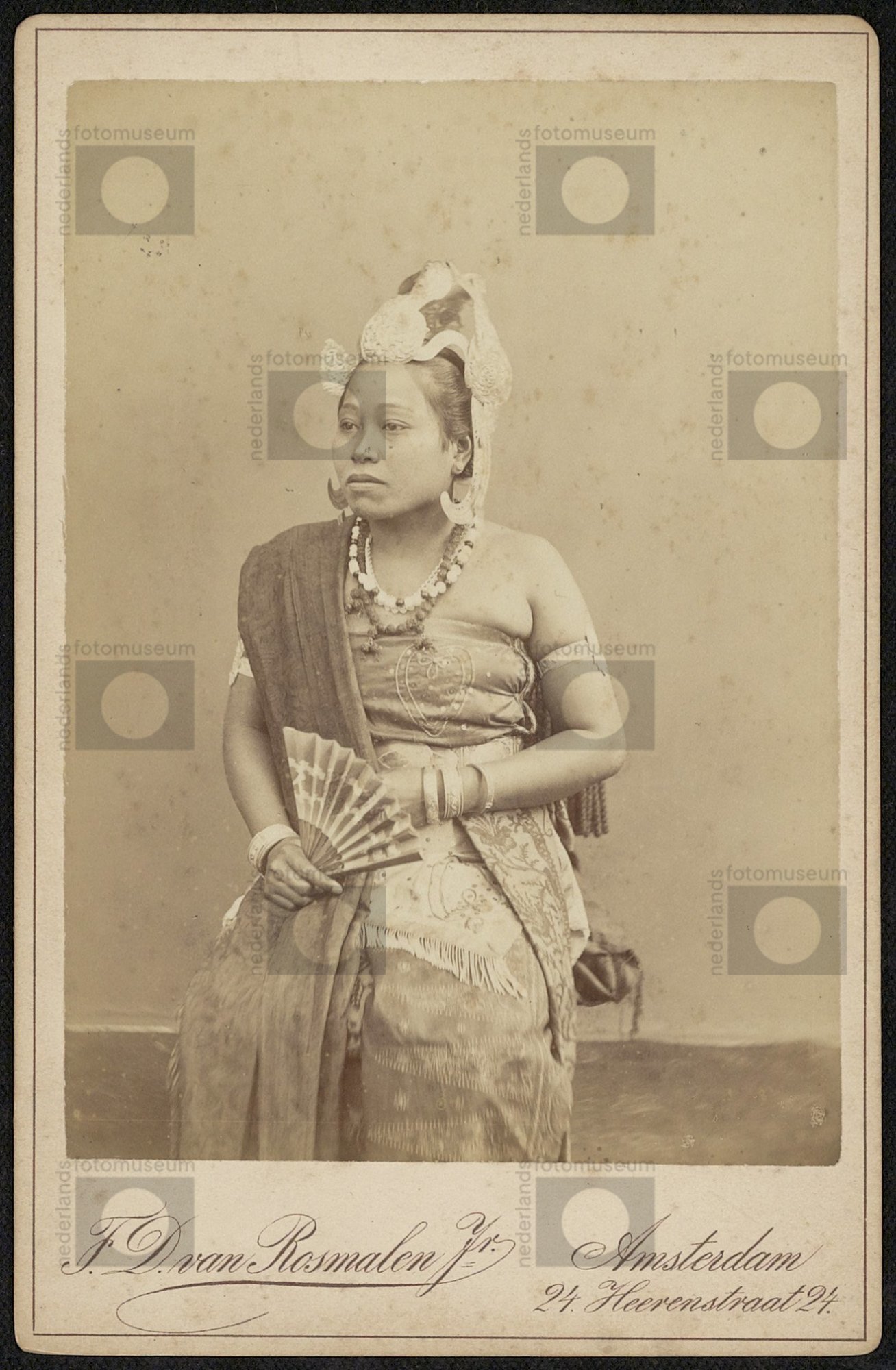Ronggen (danseres) Amsa met waaier in haar rechterha...