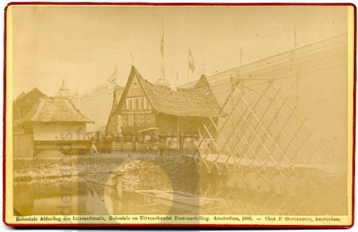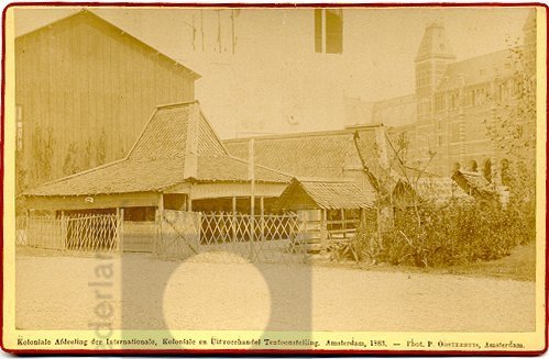 Kampong met model van een Atjehse woning op de Kolon...