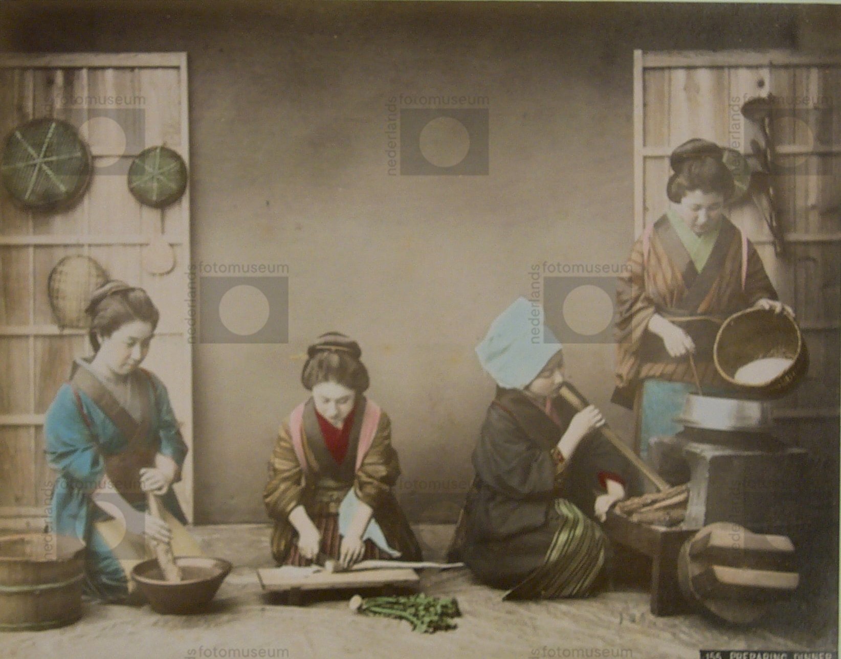 Dansende geisha's met waaiers, Japan (1881-1914)