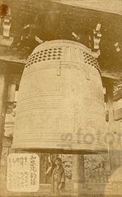 Grote bronzen tempelklok in klokkentoren, Kobe, Japa...