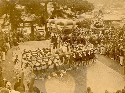 Osuwa-feest of oktoberfeest, Shinto. Feestelijkheden...