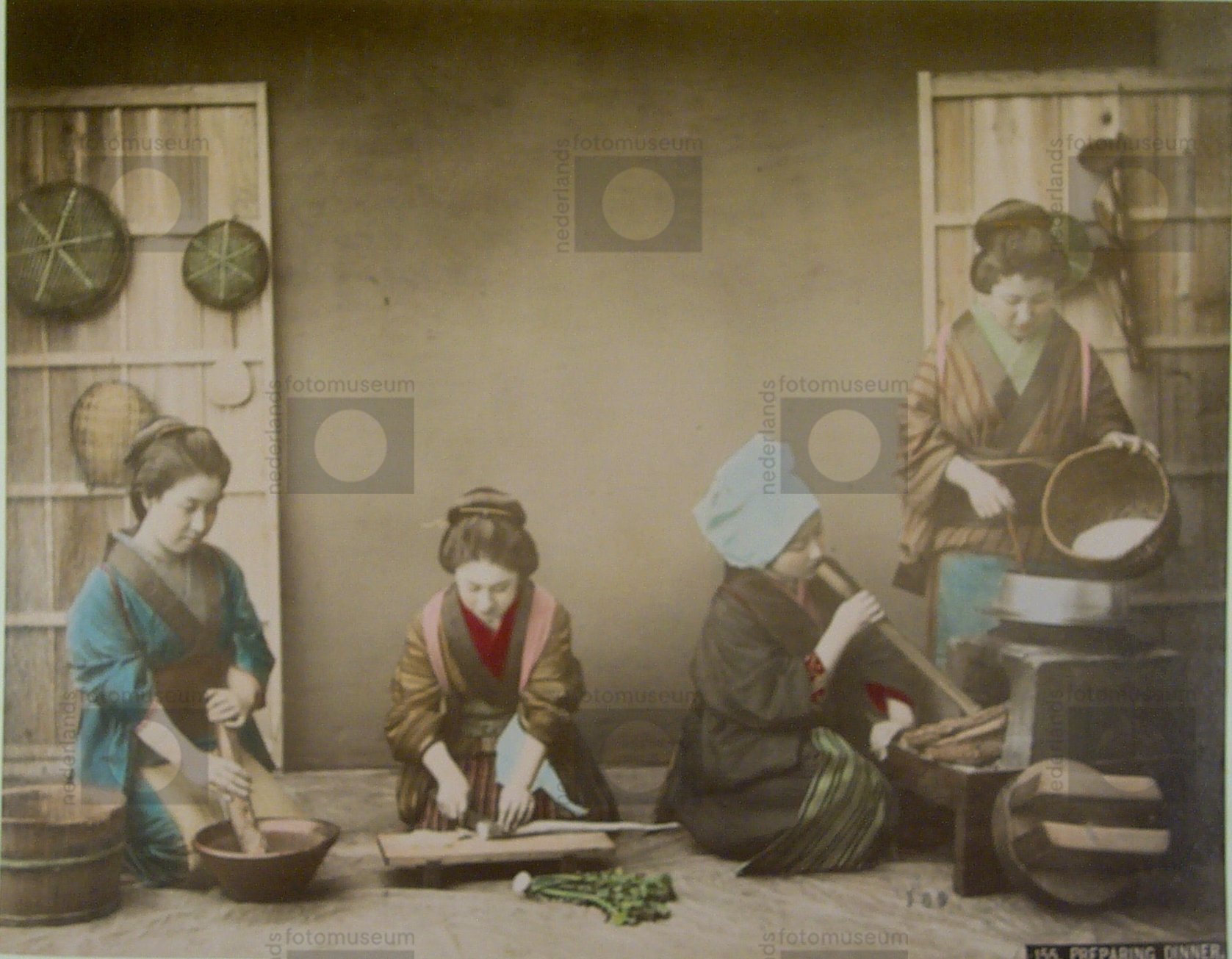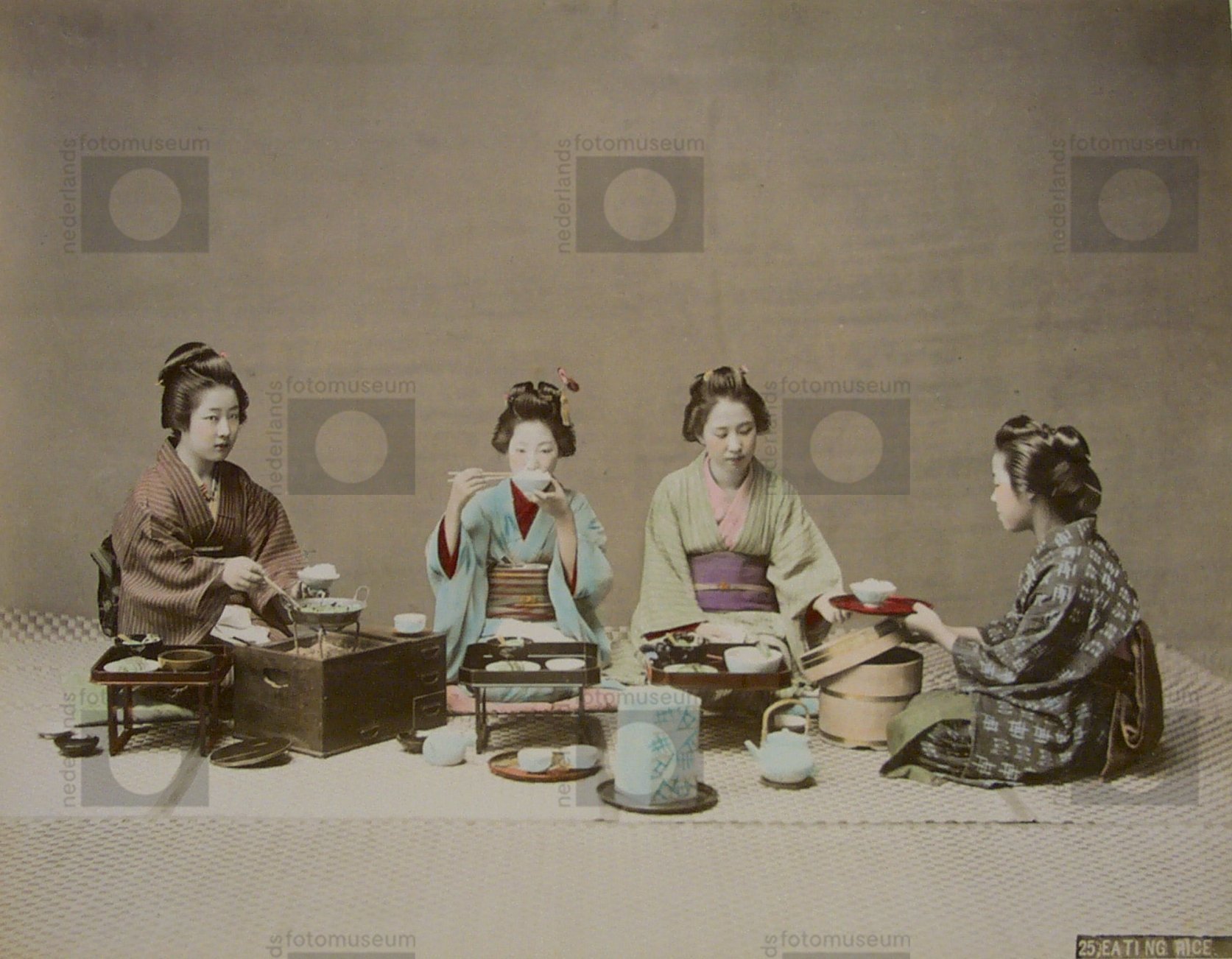 Het eten van een rijstmaaltijd, Japan (1881-1914)