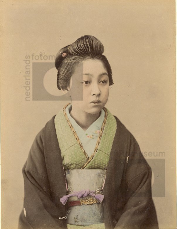 Vrouw in kimono, Yokohama, Japan (1863-1885)