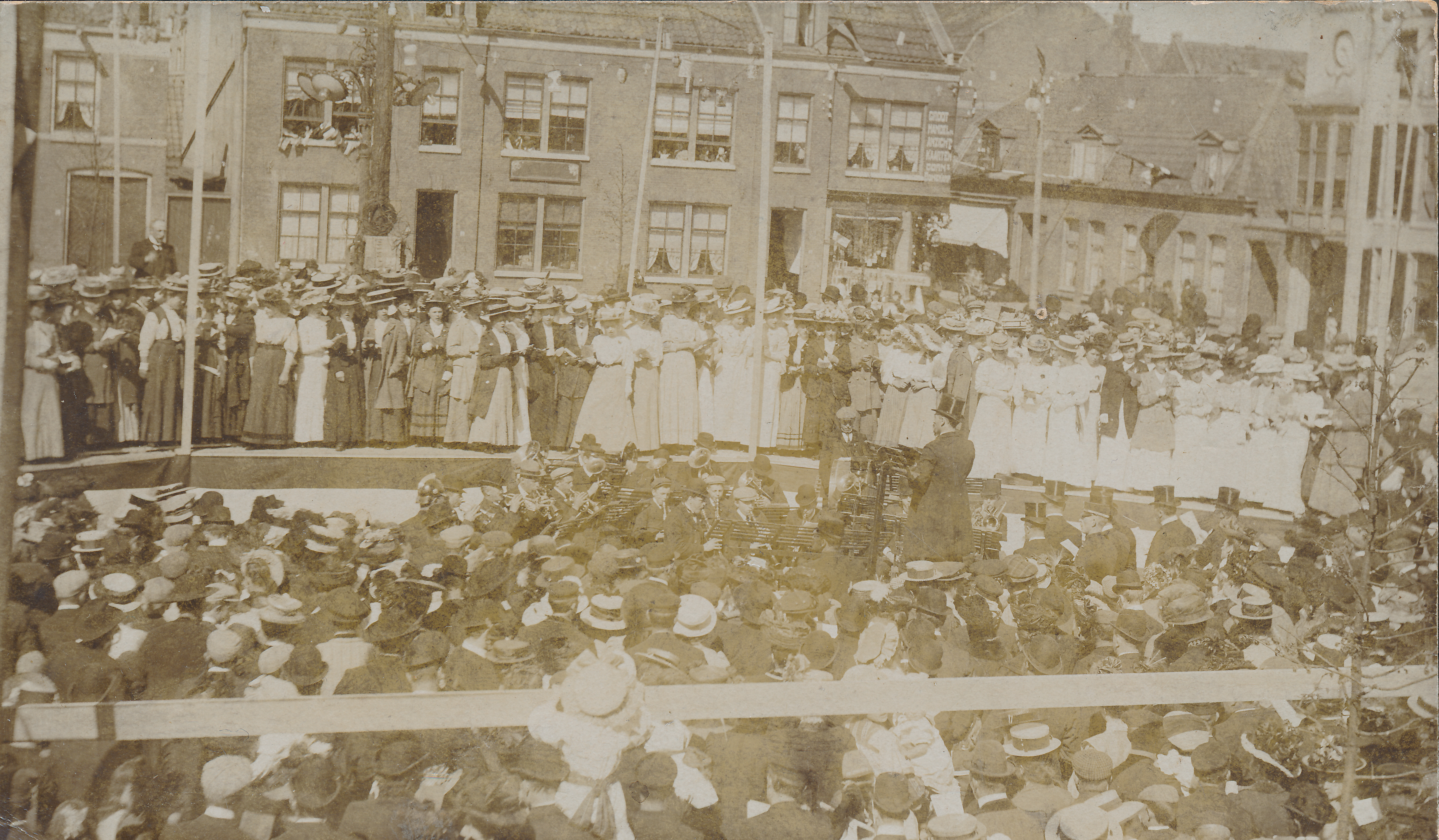 Optreden orkest en dameszangkoor.