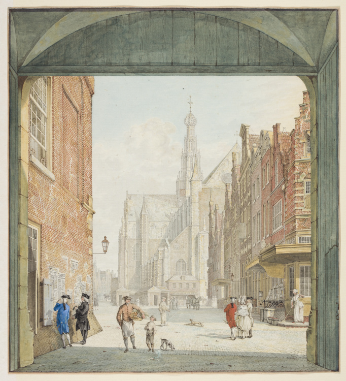 Gezicht op de Grote Kerk te Haarlem, gezien vanaf de...
