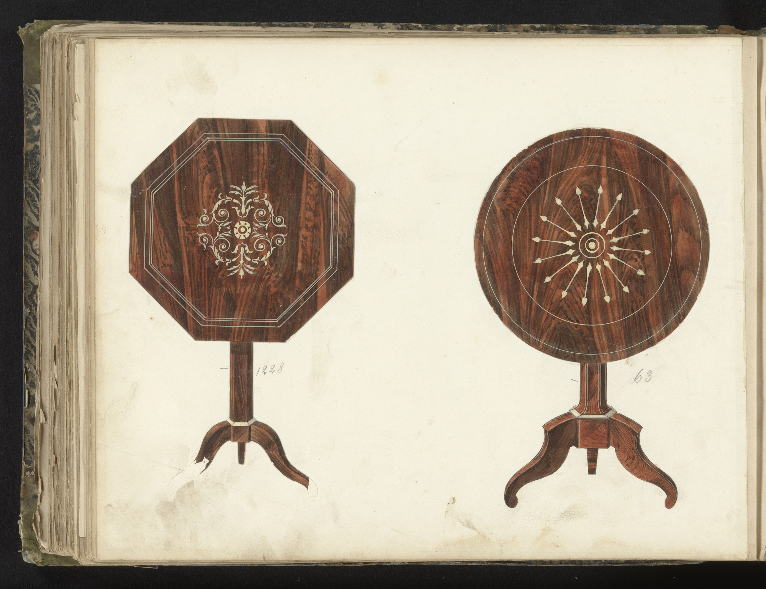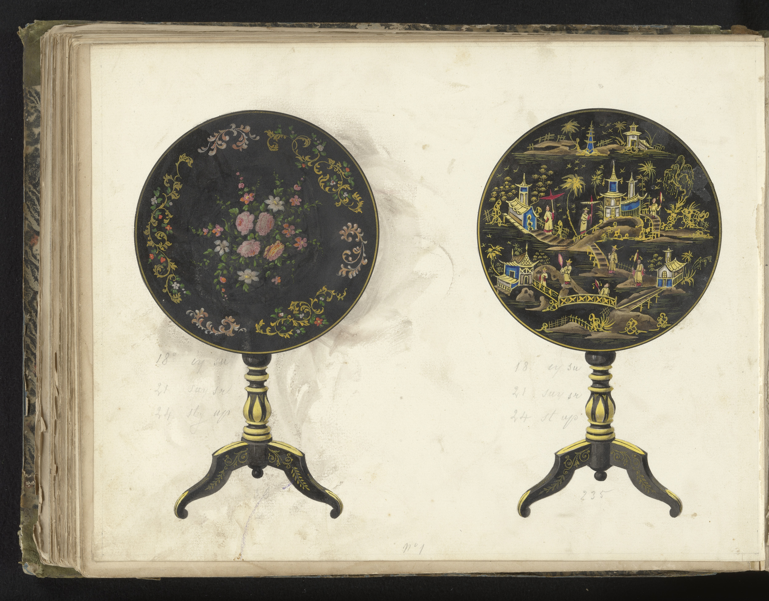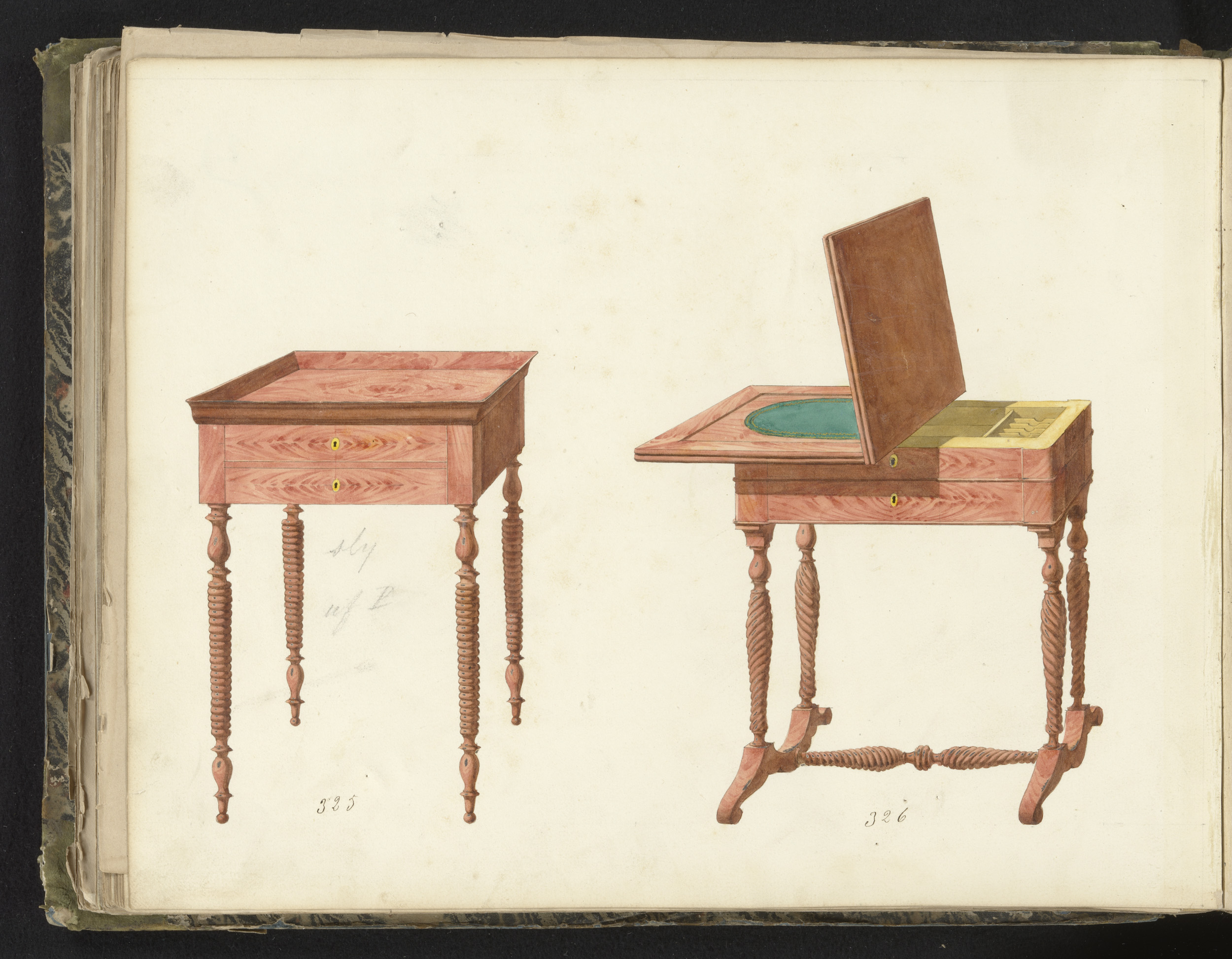 Ontwerp voor een speltafel en een gecanneleerde tafe...