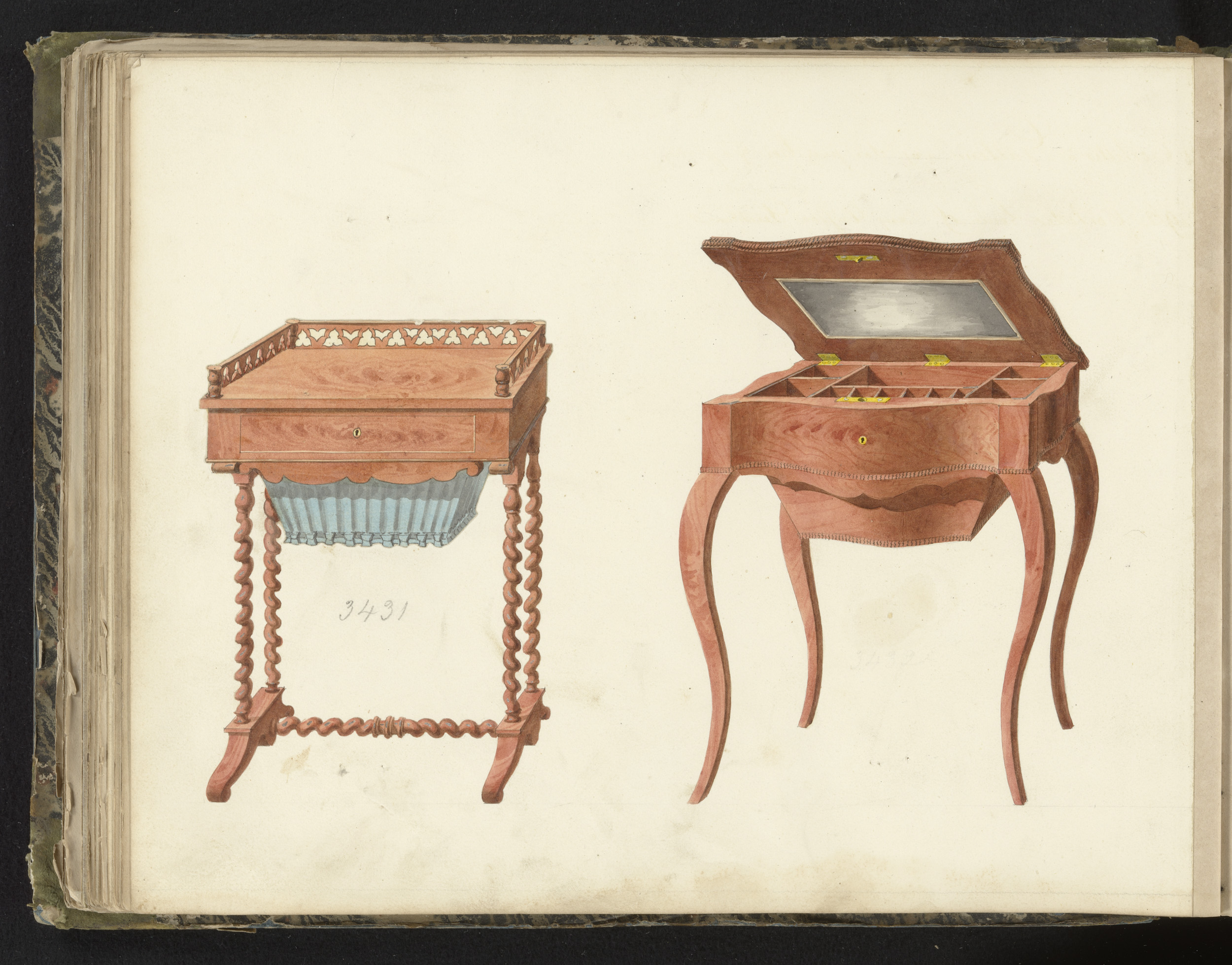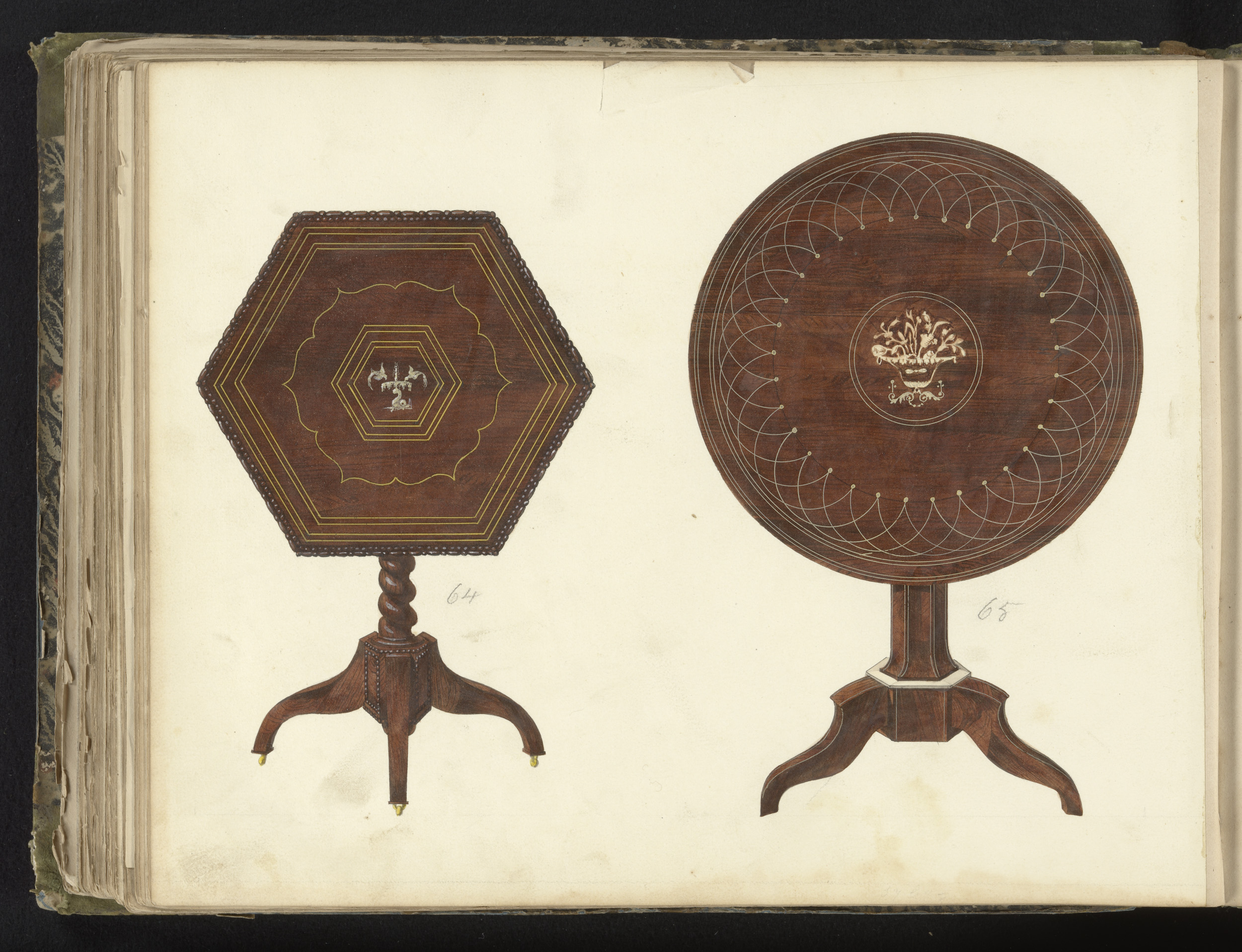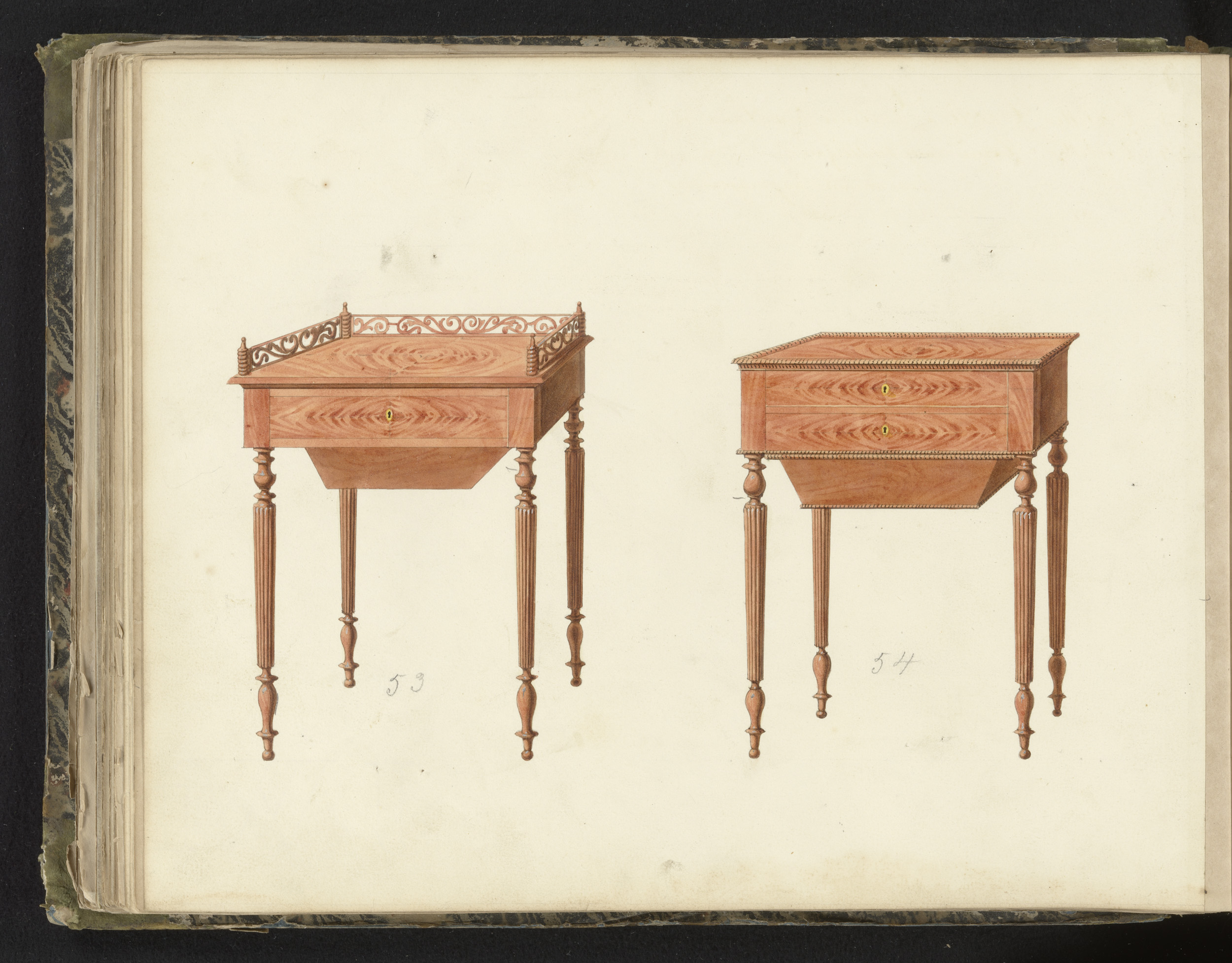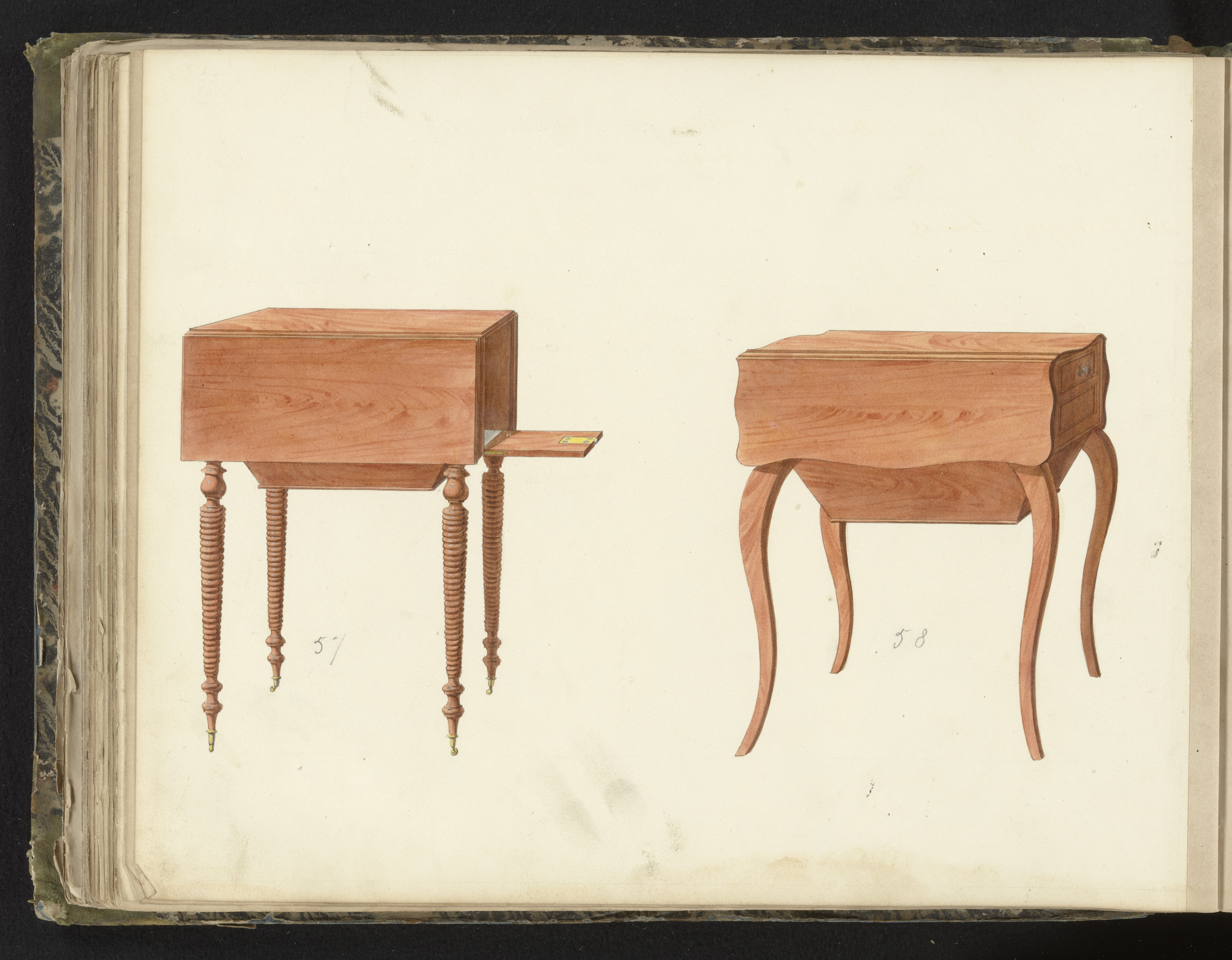 Ontwerp voor een speltafel en een gecanneleerde tafe...