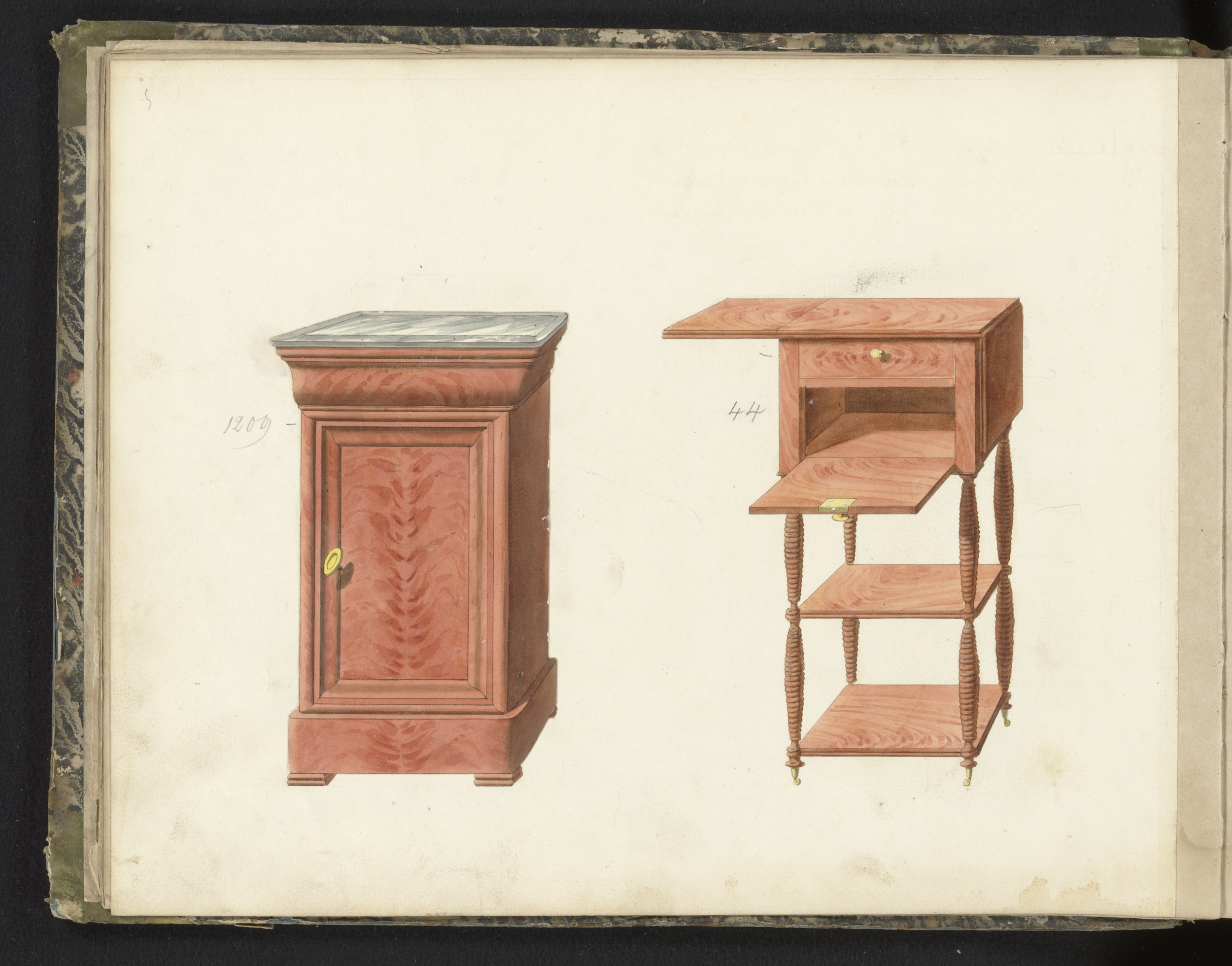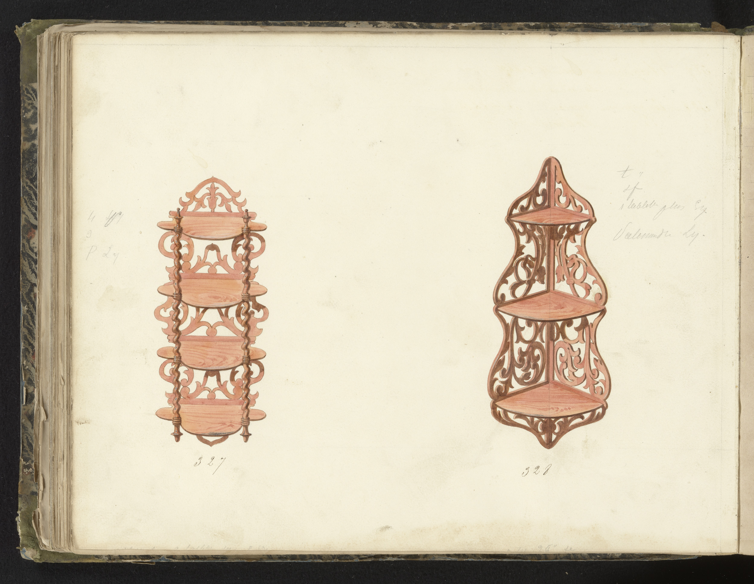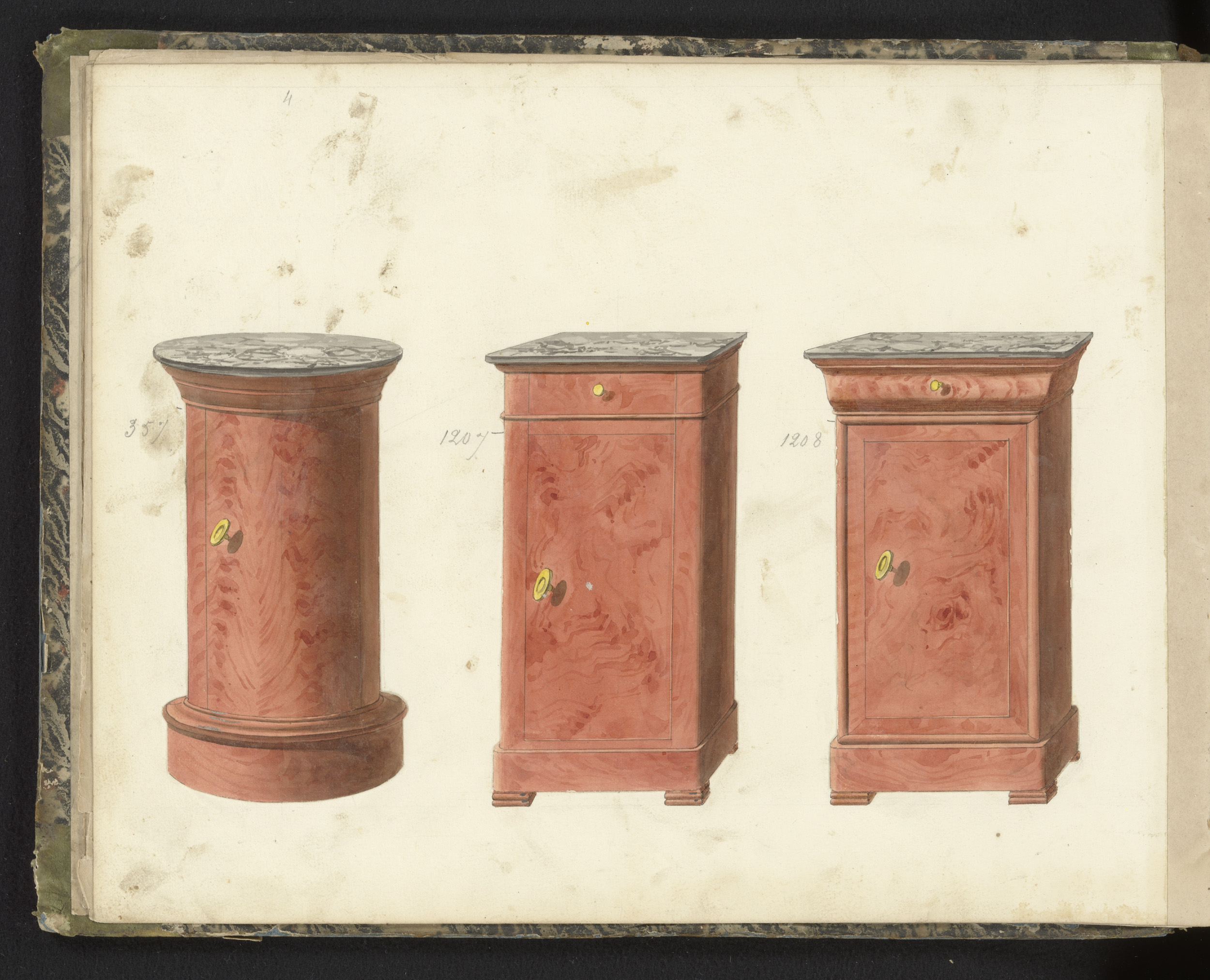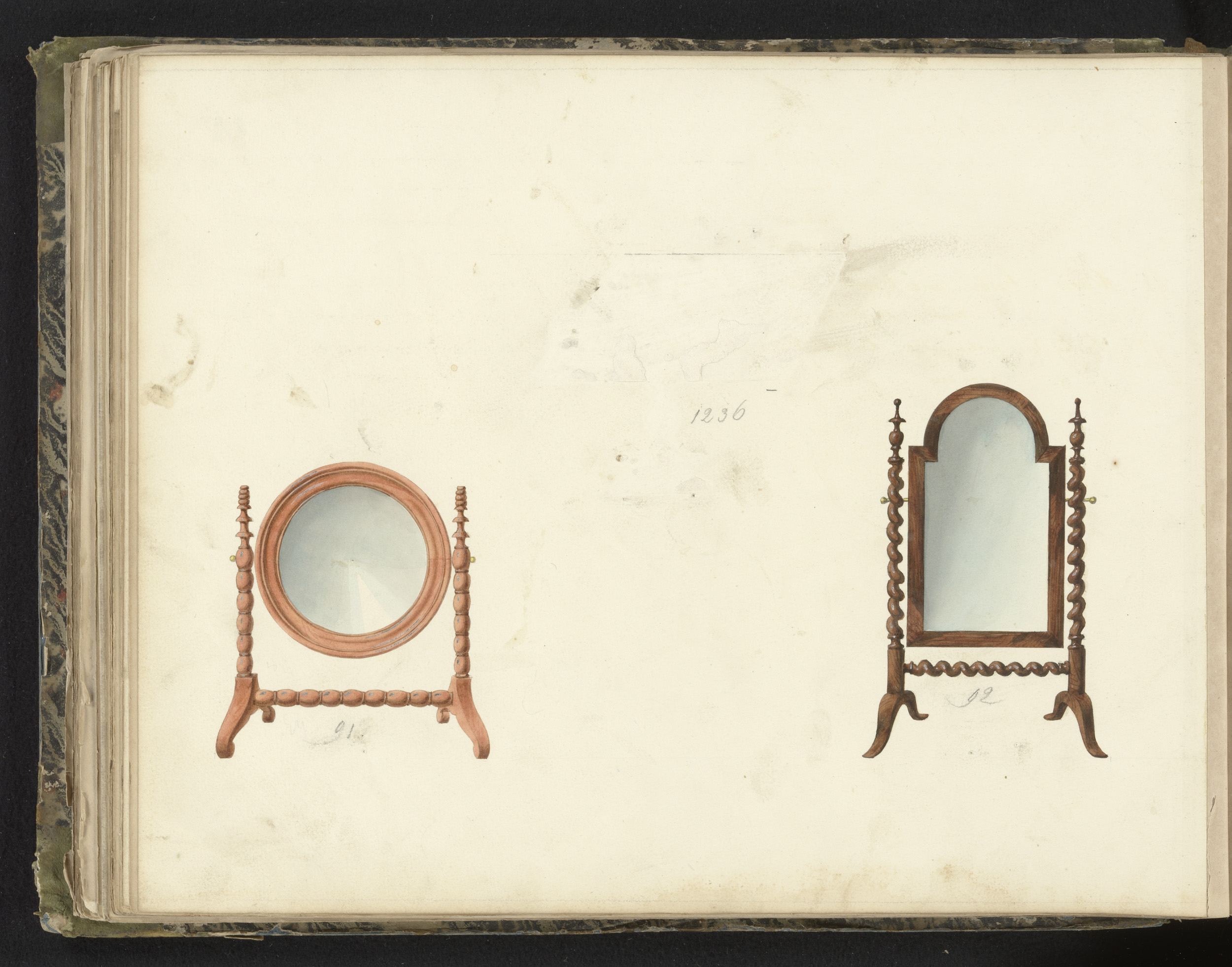 Ontwerp voor een scheerspiegel en twee ontwerpen voo...