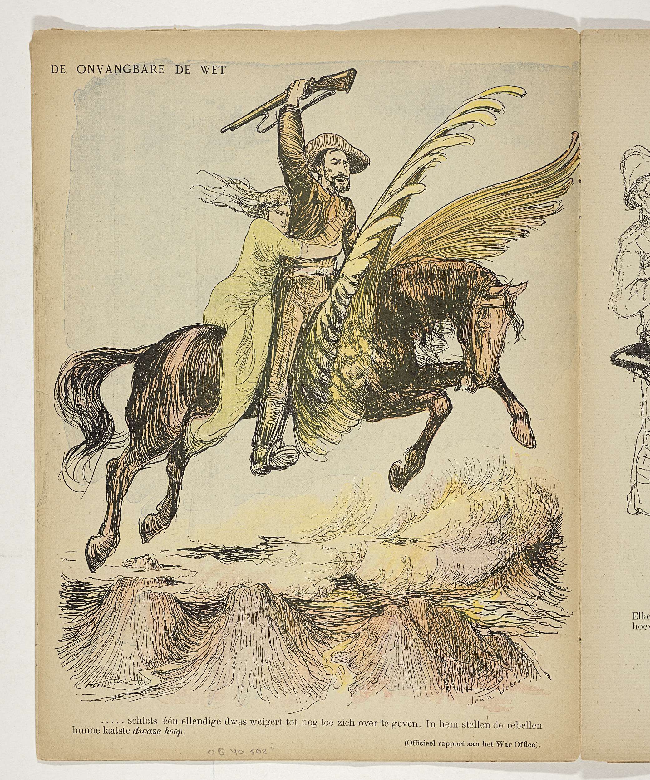 Christiaan de Wet en aan hem vastgeklampte vrouw (de...
