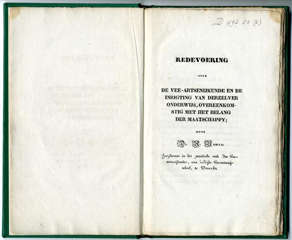 Redevoering over de vee-artsenijkunde en de inrigtin...