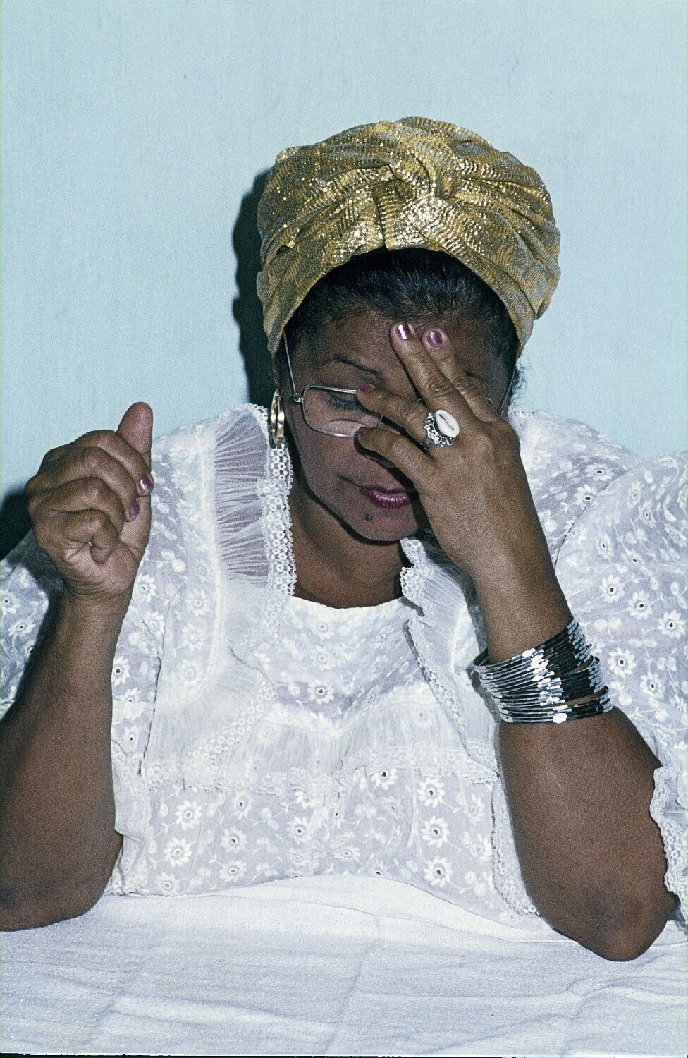 'Close-up van moeder Amara, priesteres van de Afro-B...