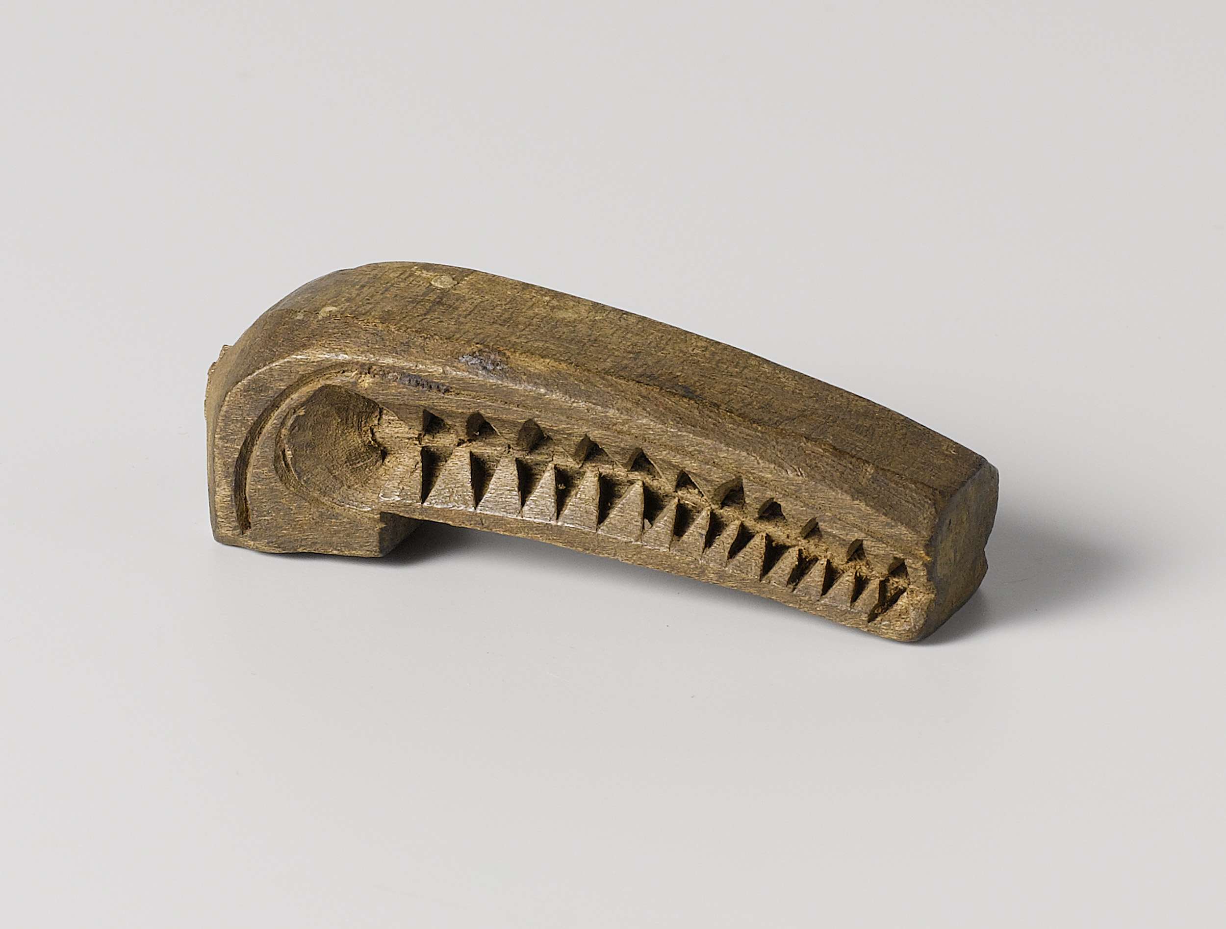 Fragment van hout, in de vorm van een pijp en versie...