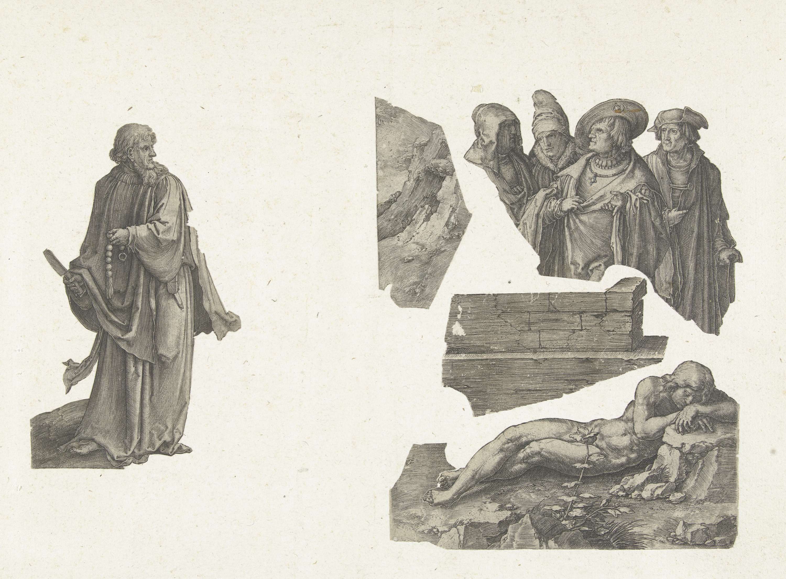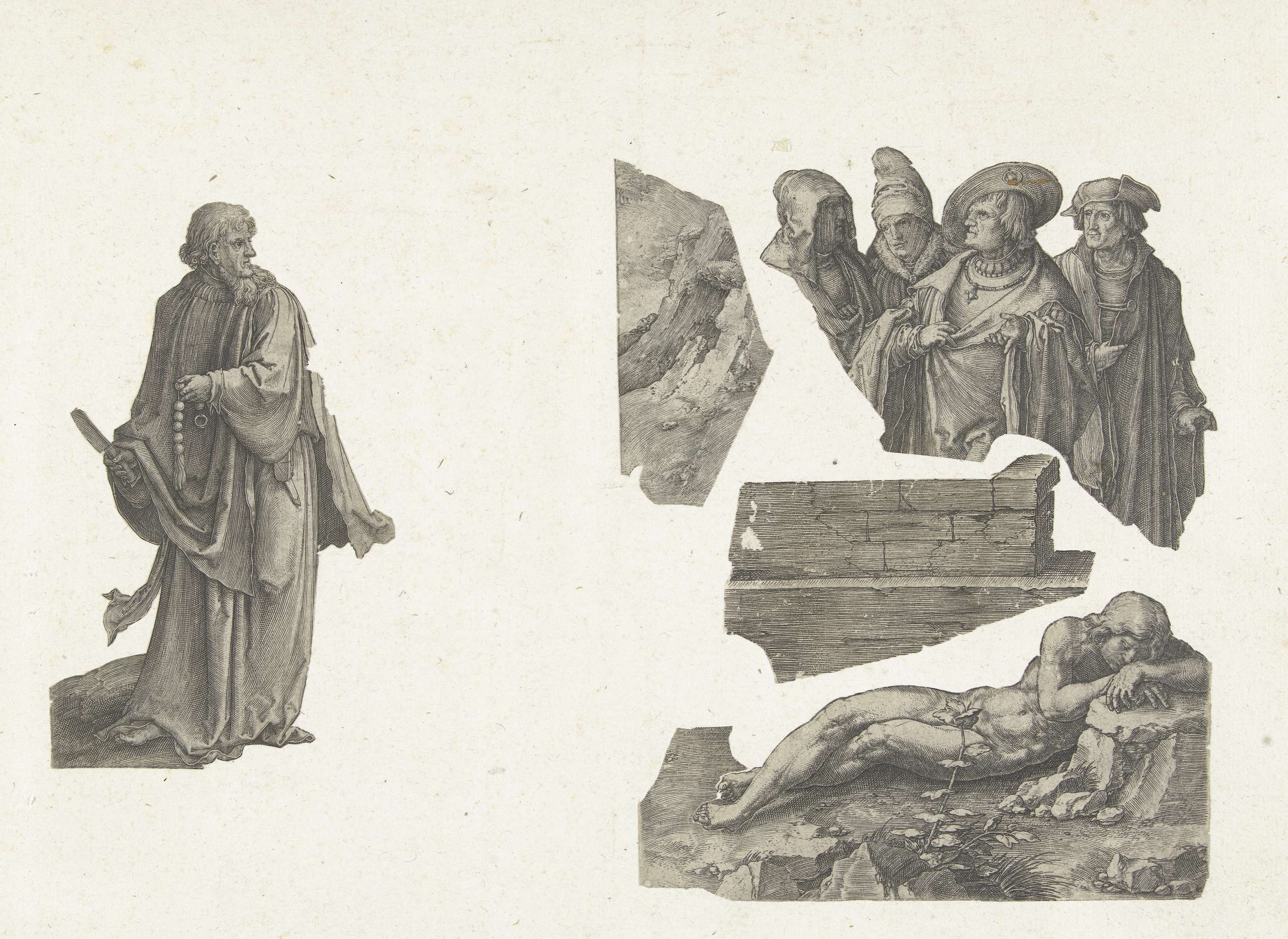 Vijf fragmenten van prenten