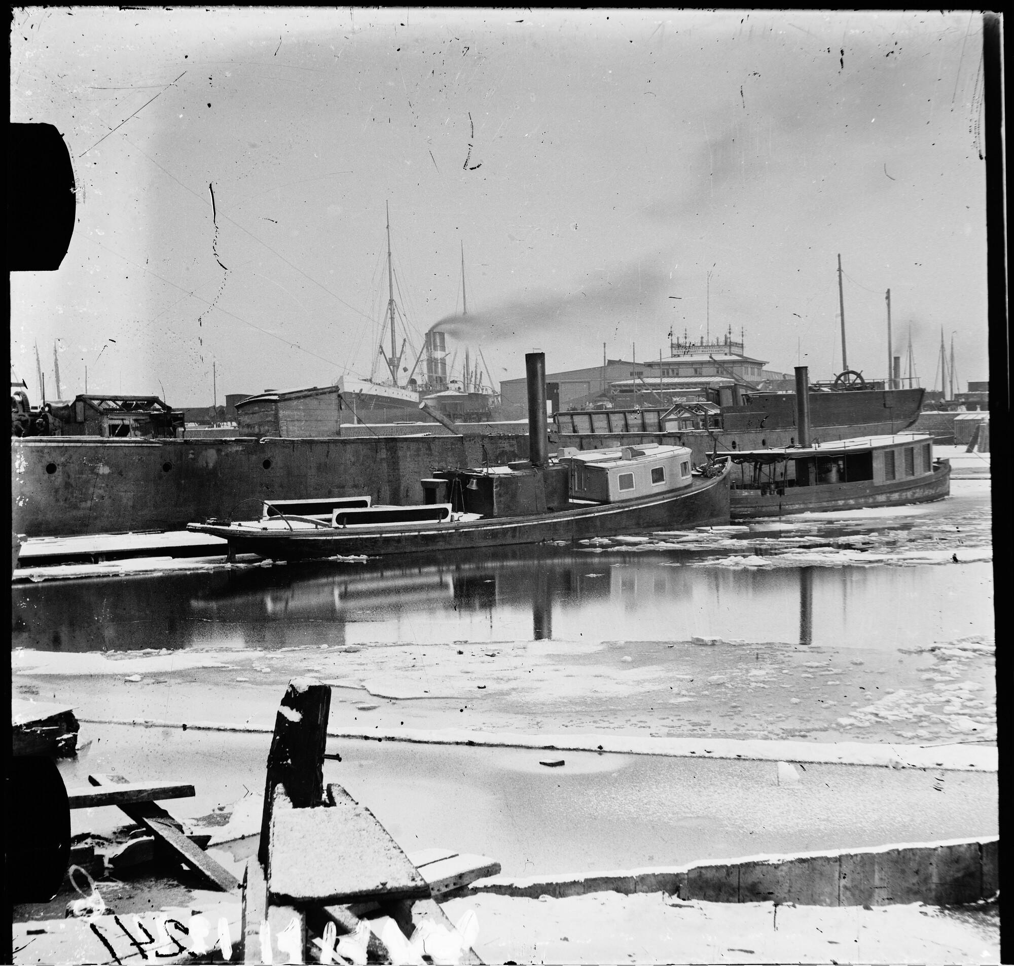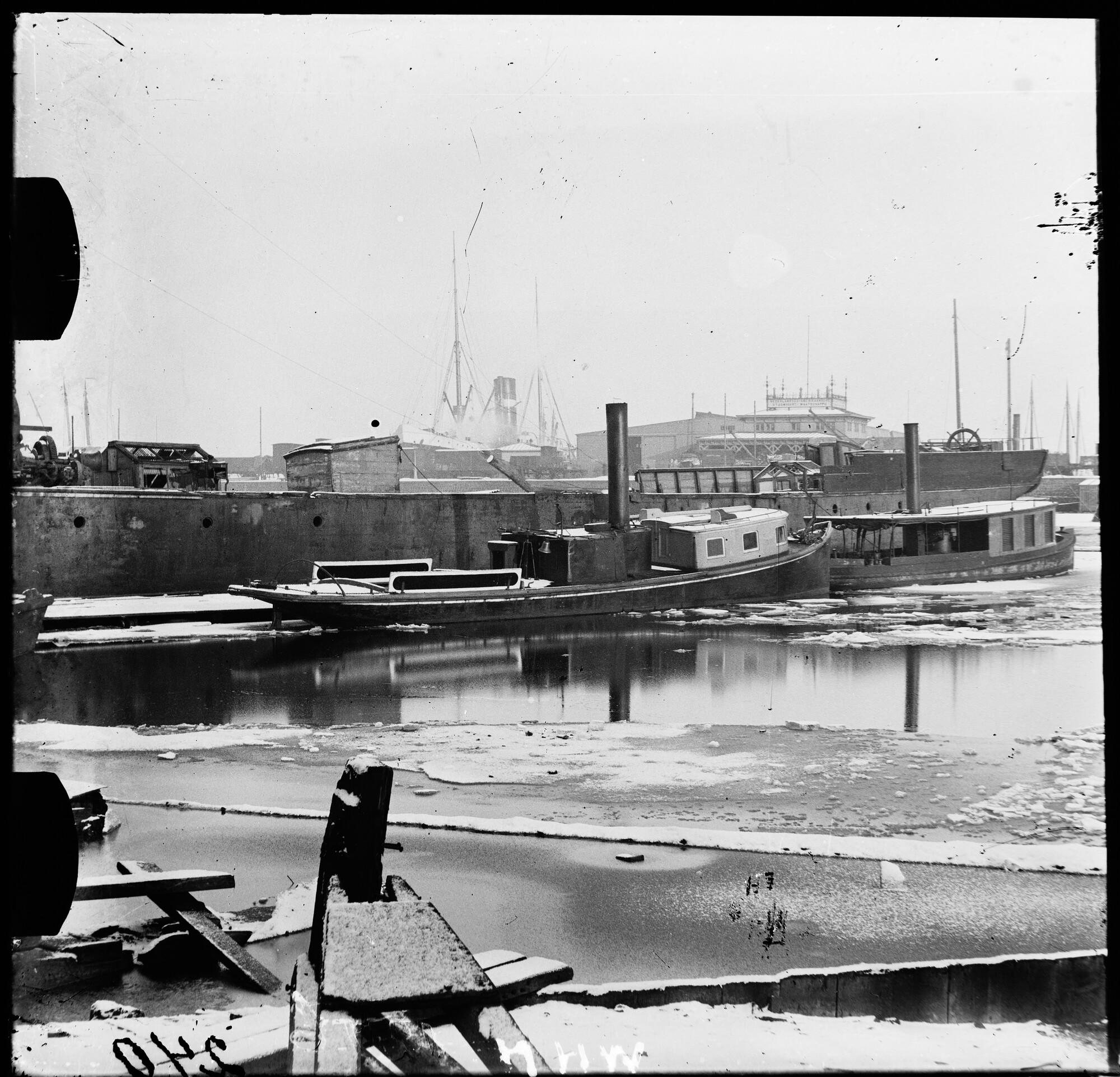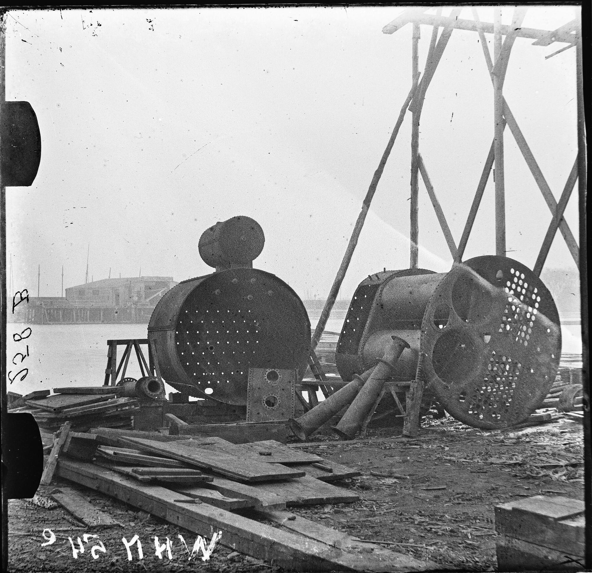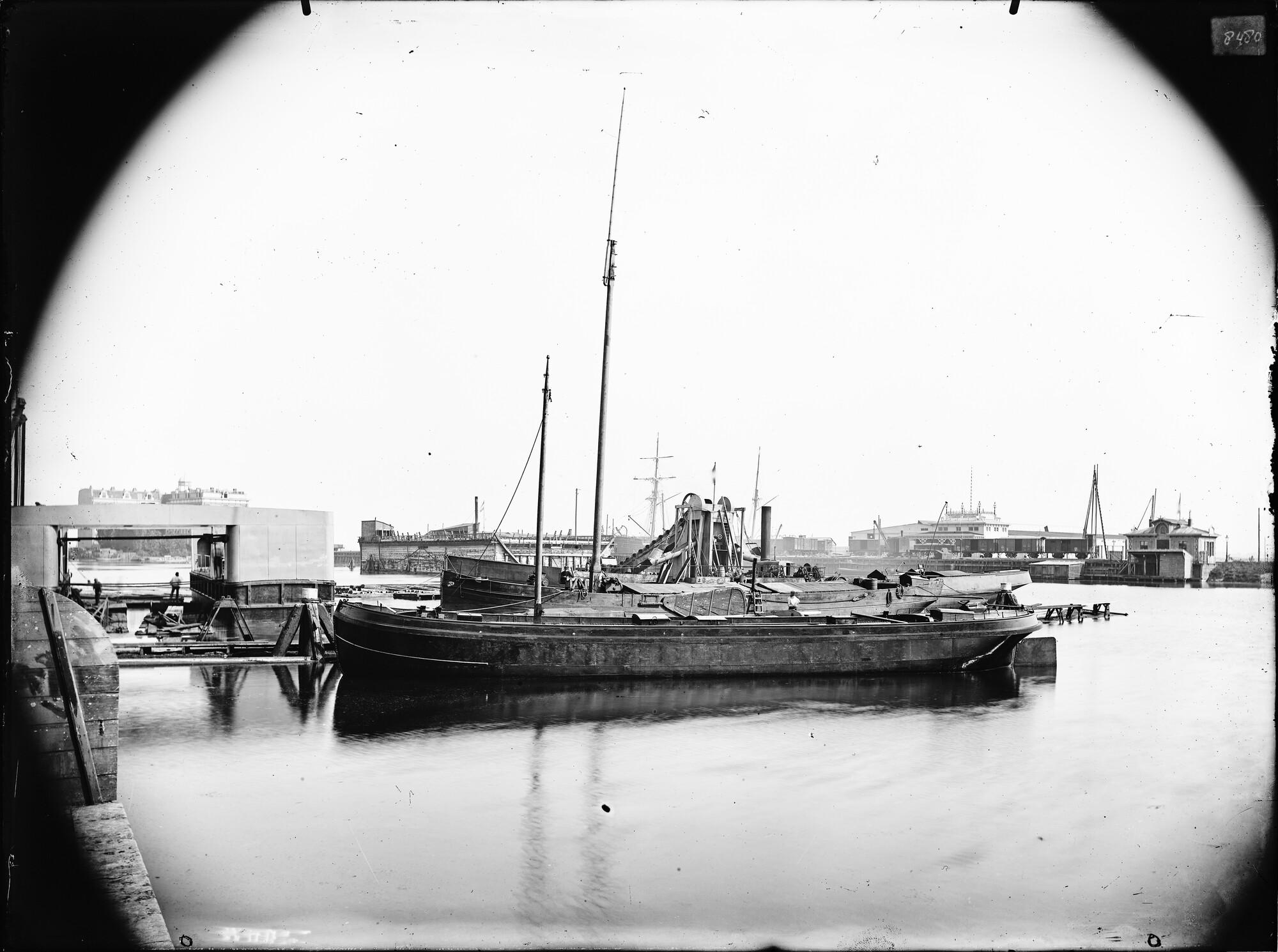Glasnegatief van motorsloep Annie, in aanbouw op de ...