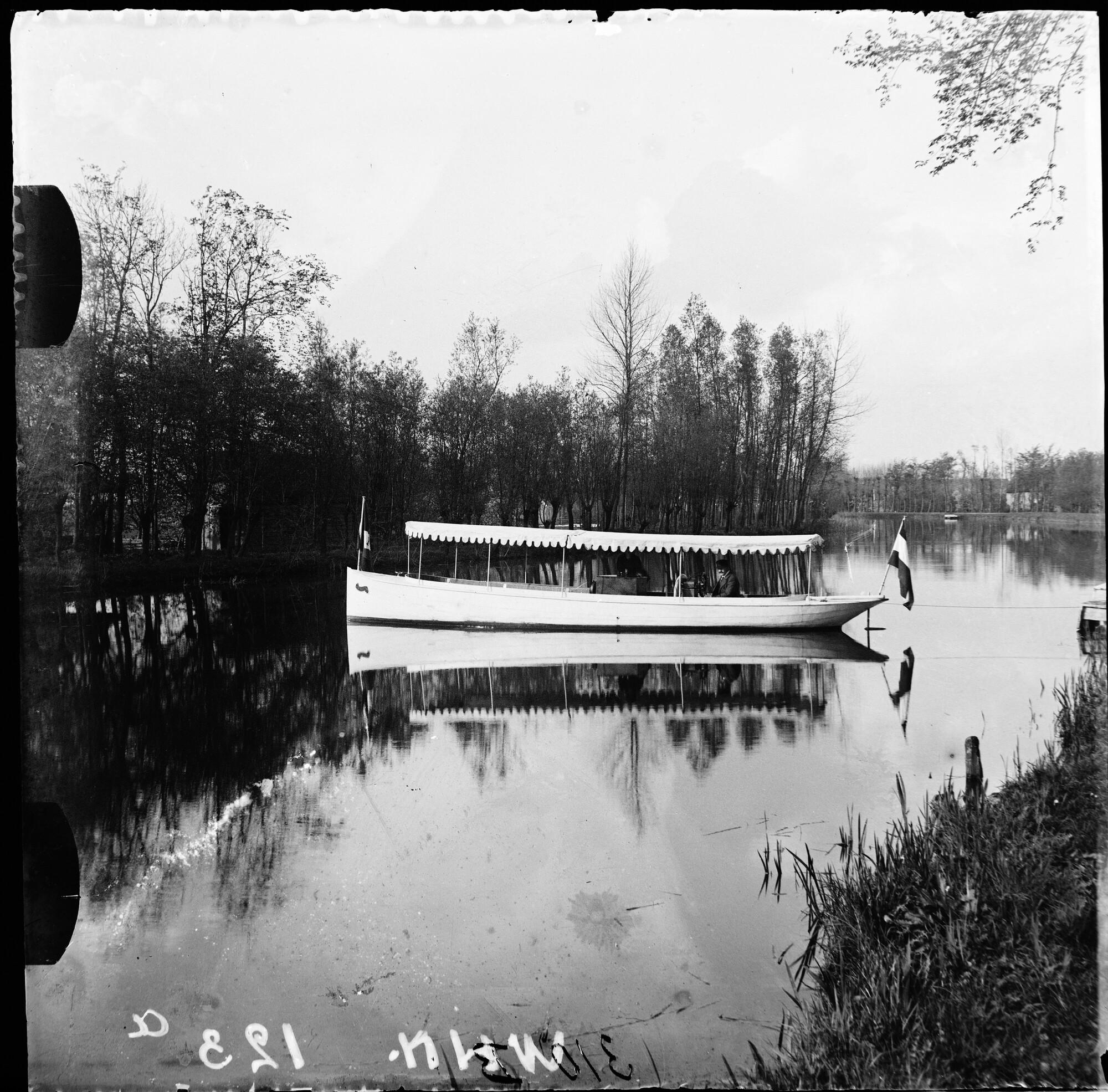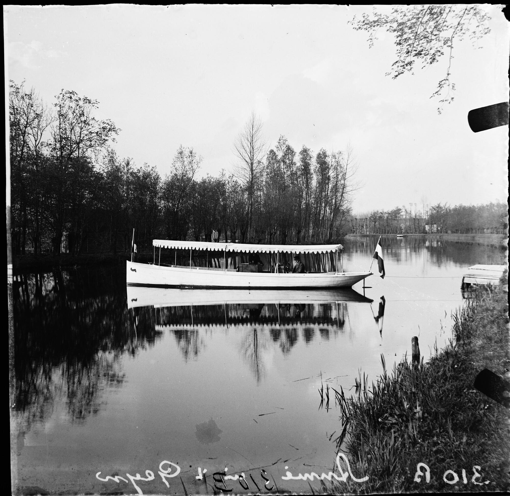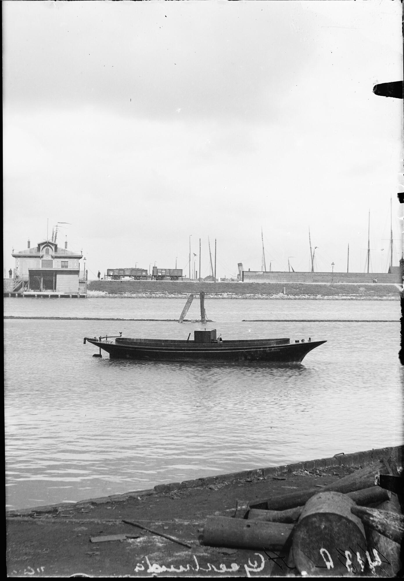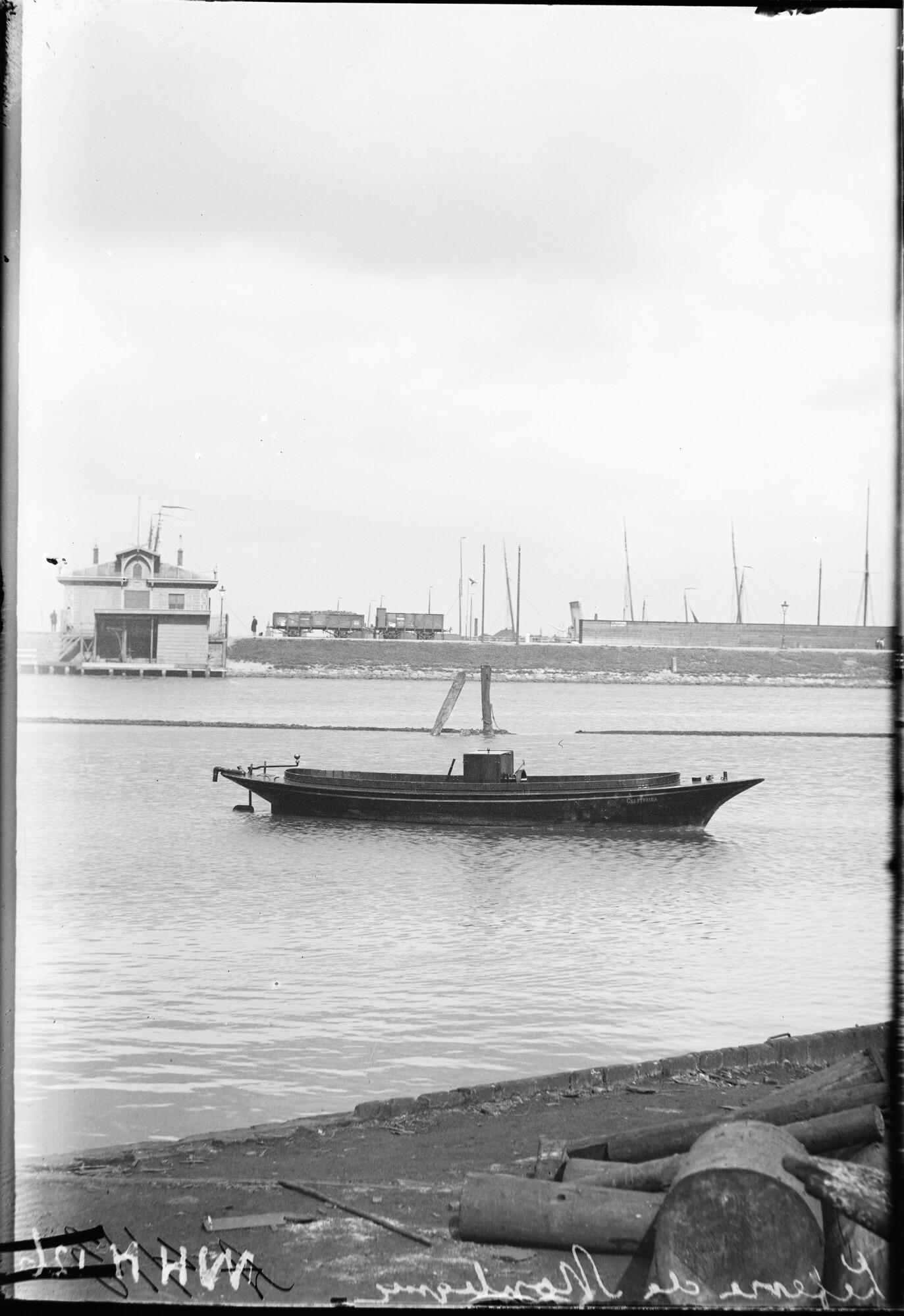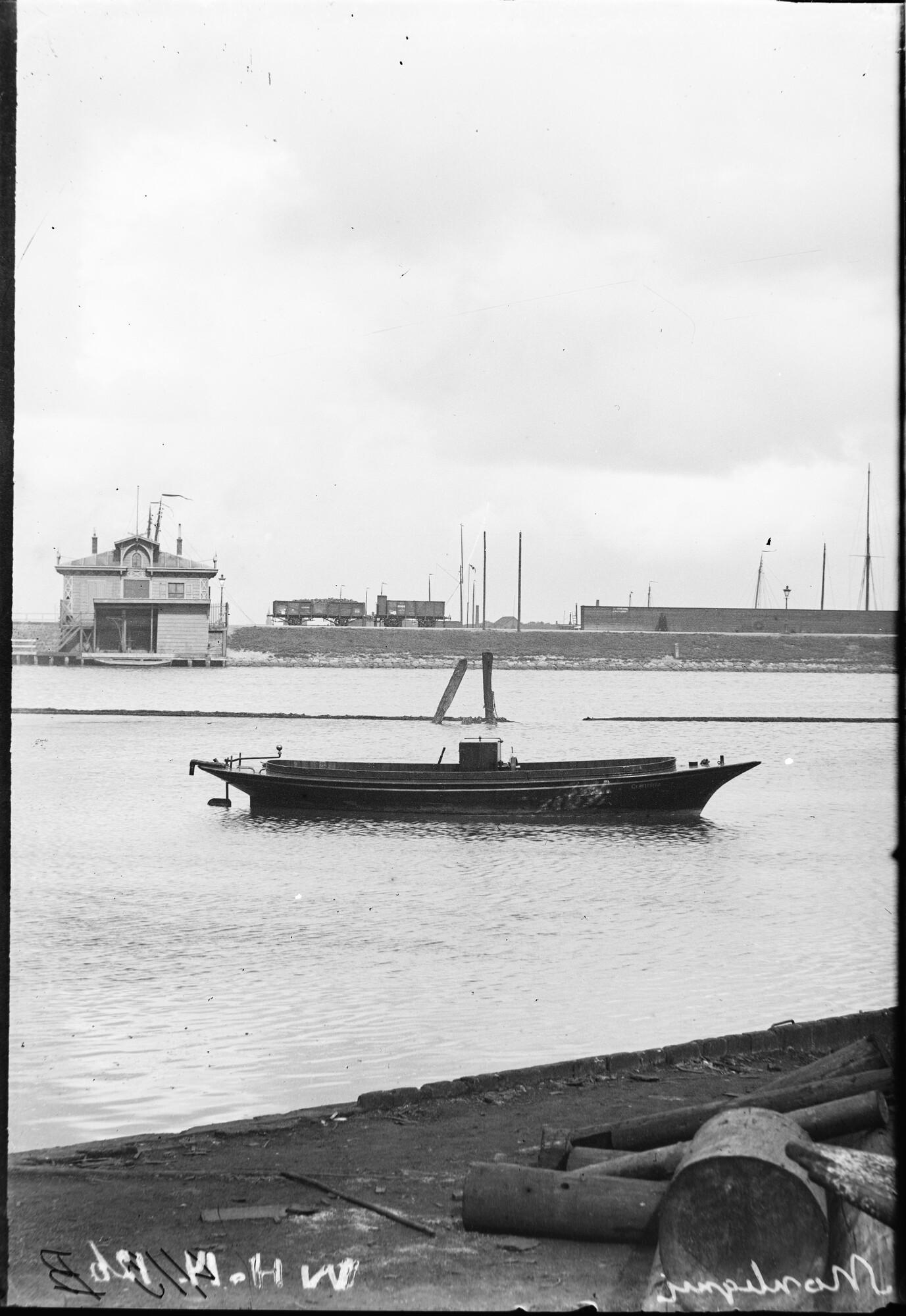 Glasnegatief van de motorsloep Annie, zijaanzicht op...