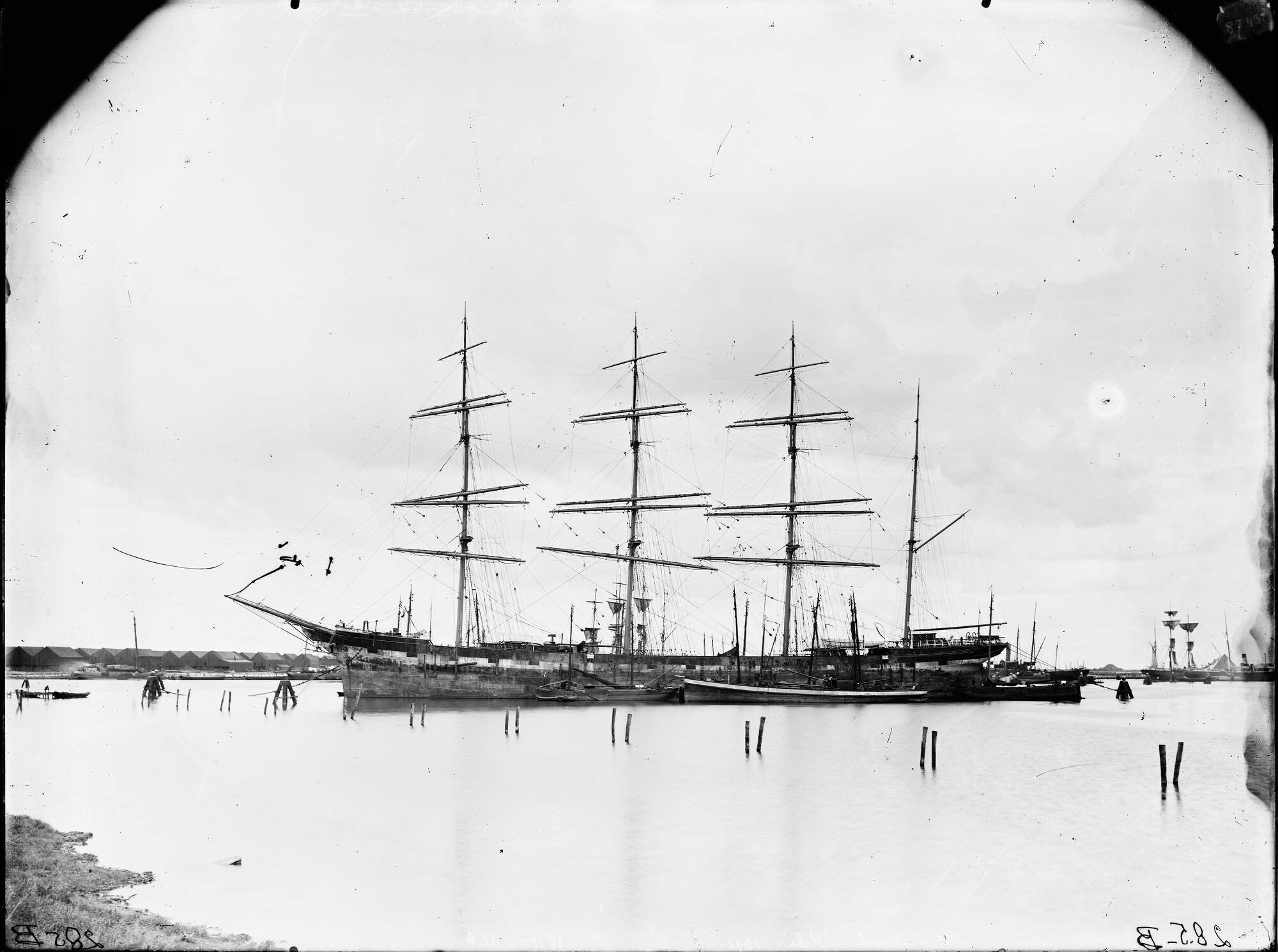 Glasnegatief van de stalen viermast bark Hebe, afgem...