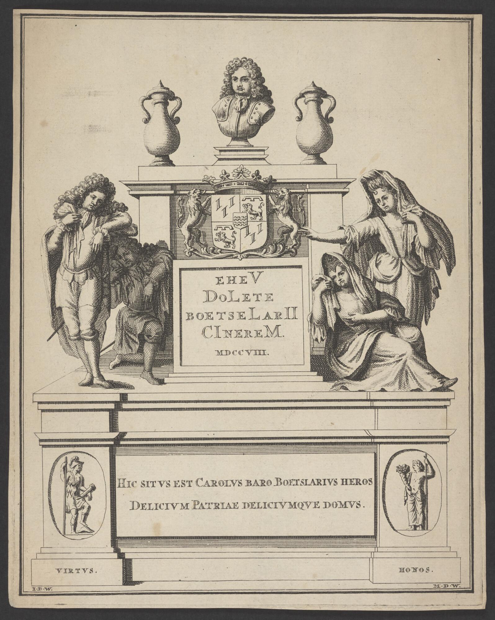 Prent van het grafmonument van Carel baron van den B...