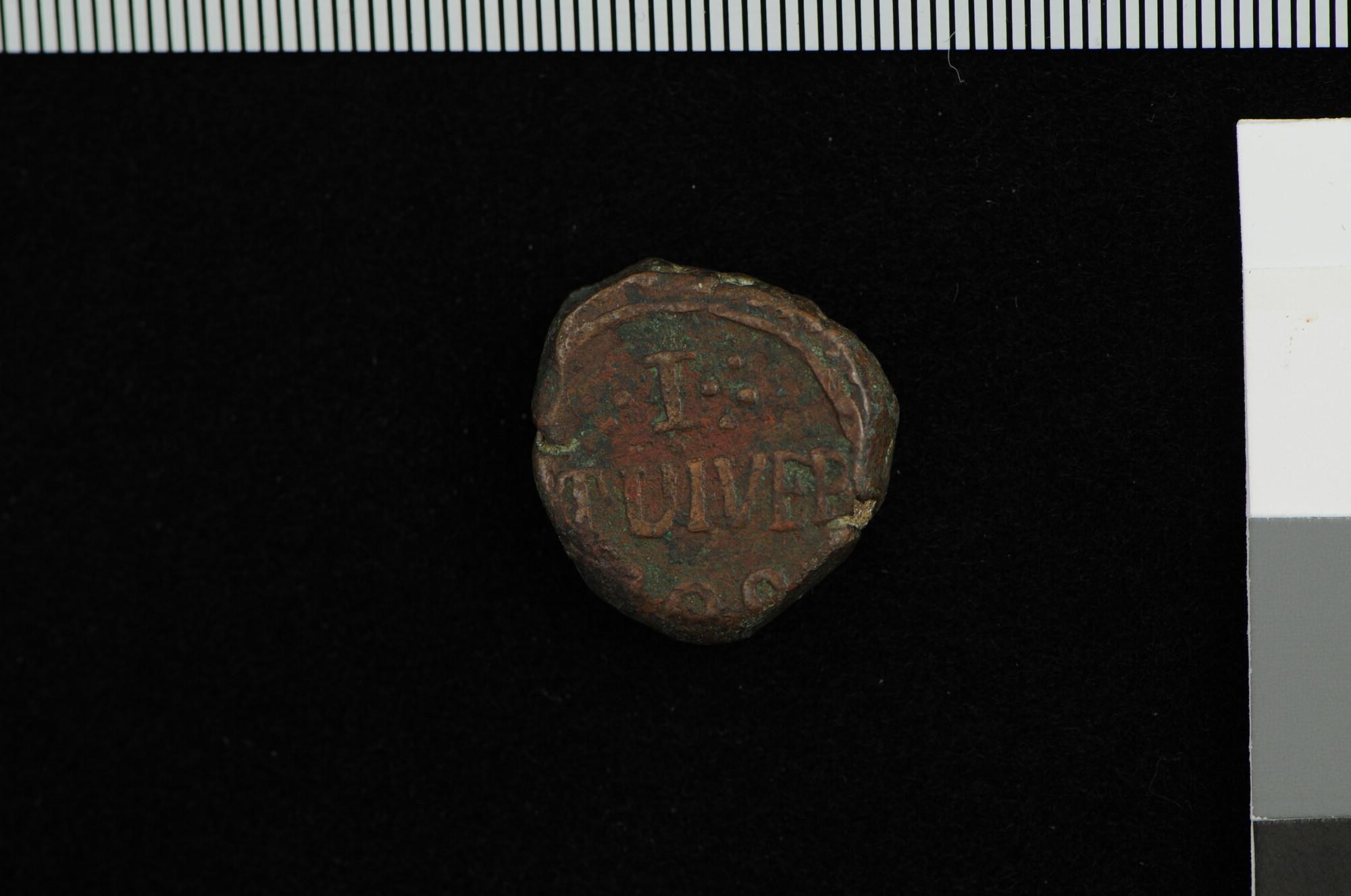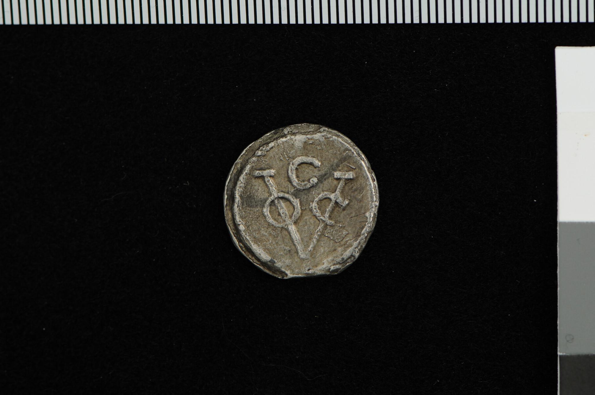 Zilveren afslag van een halve duit, geslagen te Utre...