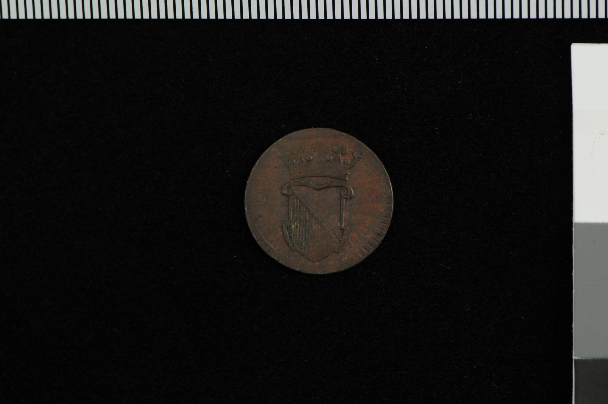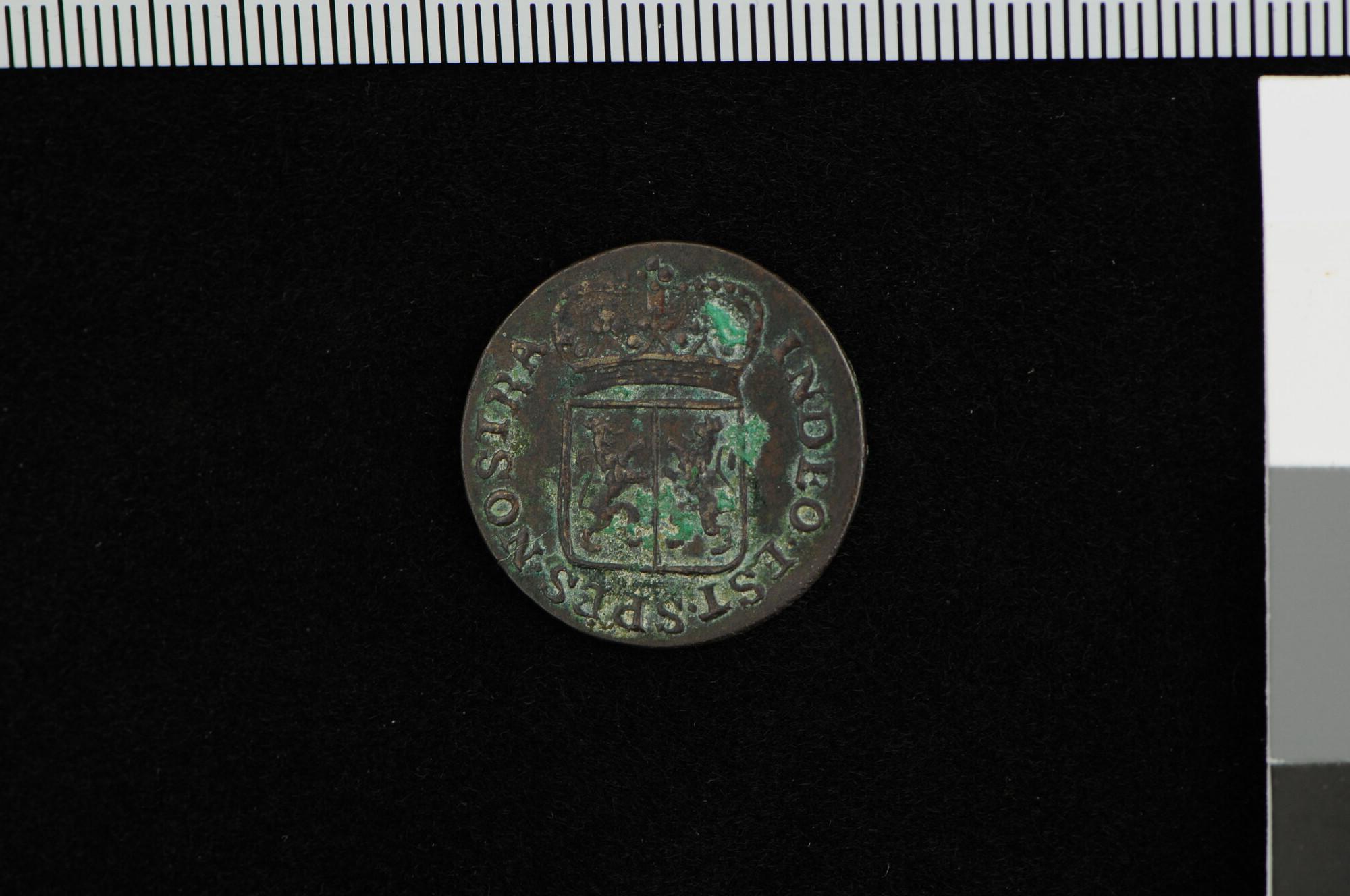 Halve duit, geslagen in Gelderland voor de VOC, 1789