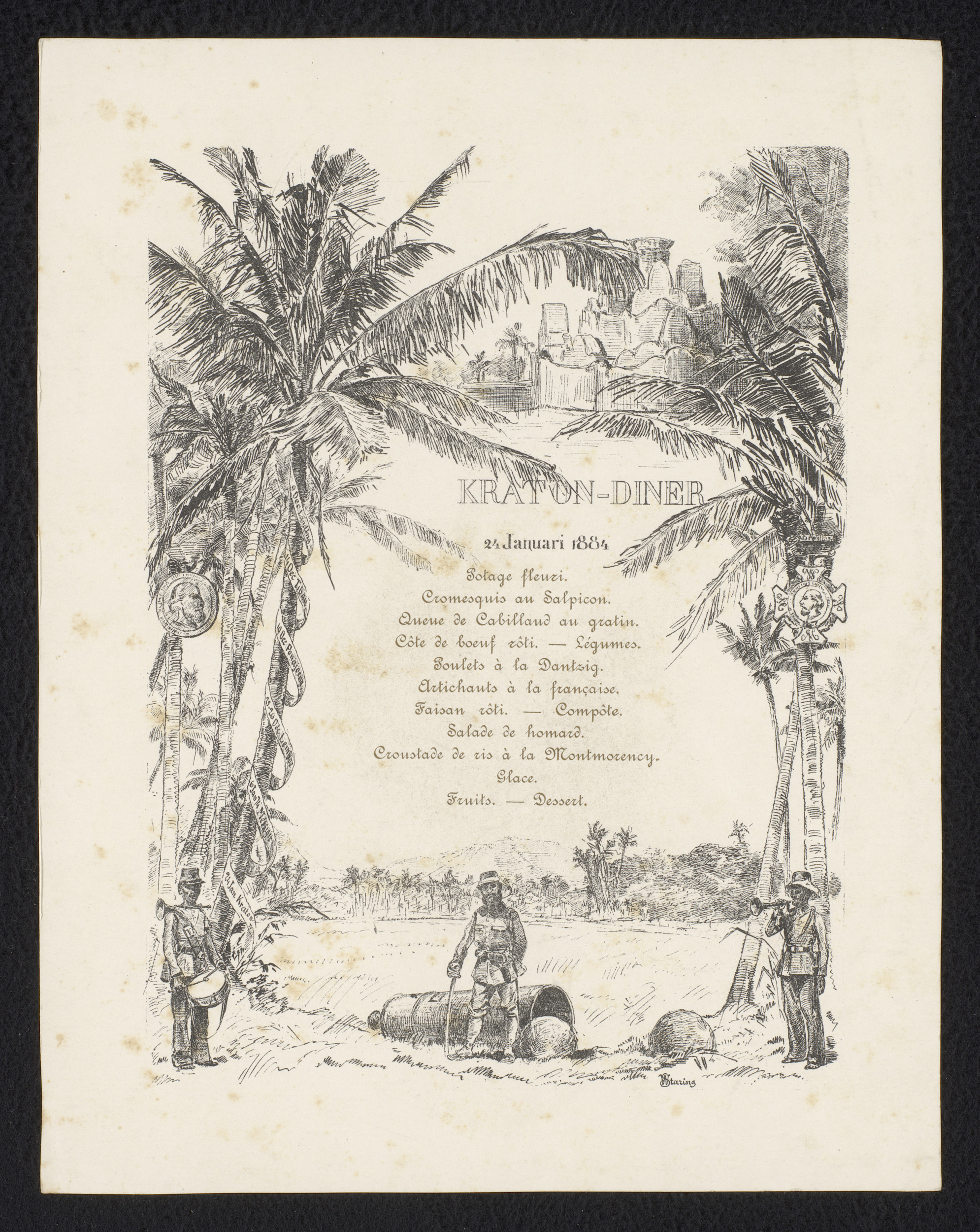 Menu van het Kraton-diner op 24 januari 1884