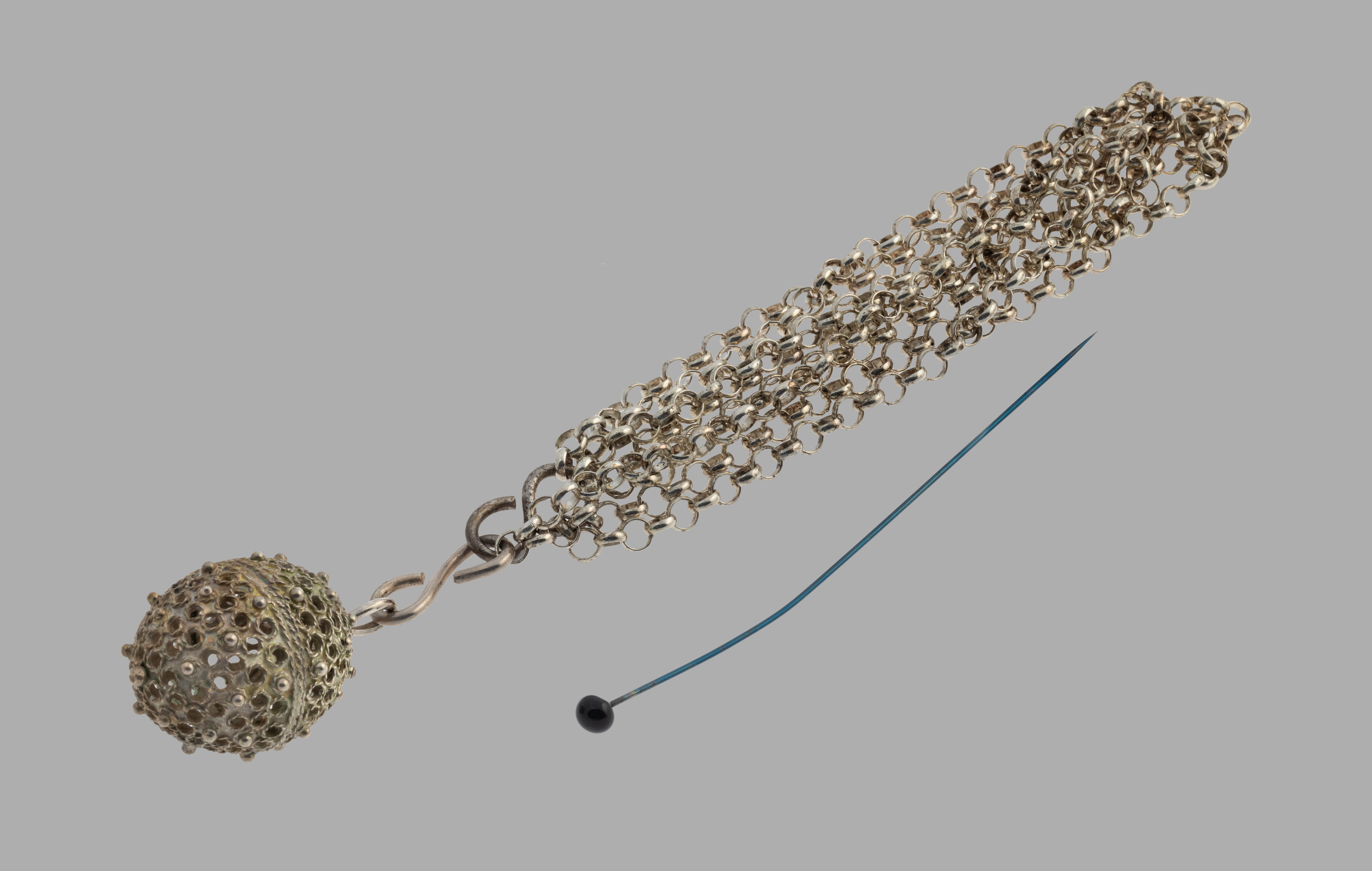 Blempiesketting en -knoop, gedragen als sieraad bij ...