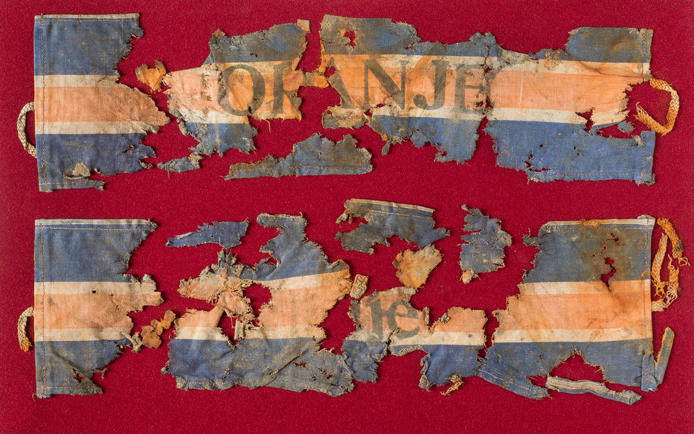 Twee blauw, wit oranje mouwbanden van de Nederlandse...